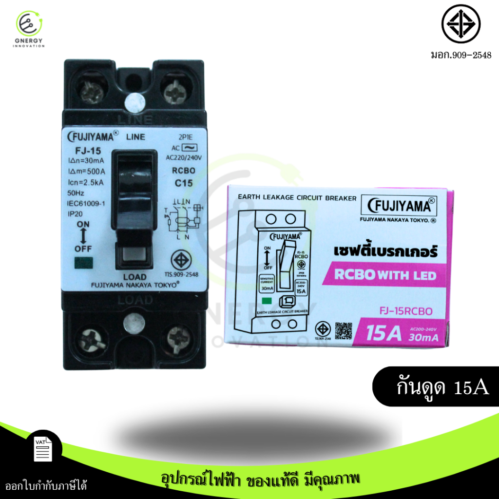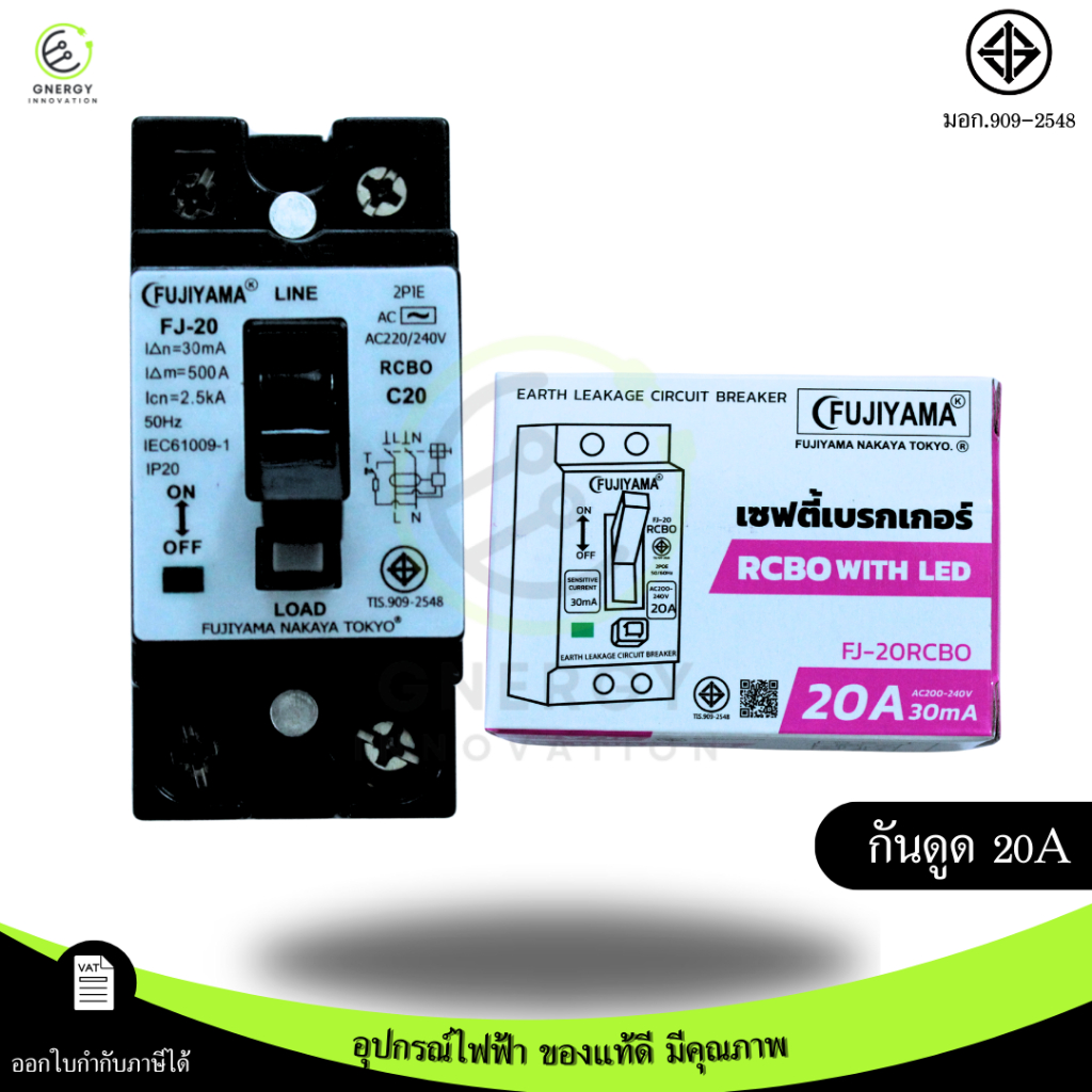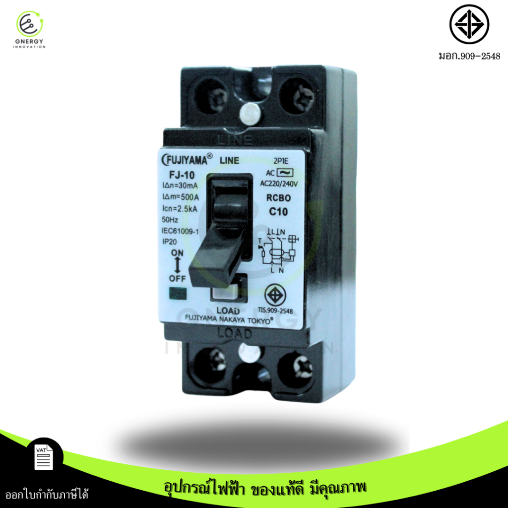 Fujiyama เซฟตี้เบรกเกอร์ กันไฟดูด กันไฟรั่ว Safety Breaker RCBO 2P 10A/15A/20A/30A มอก.909-2548