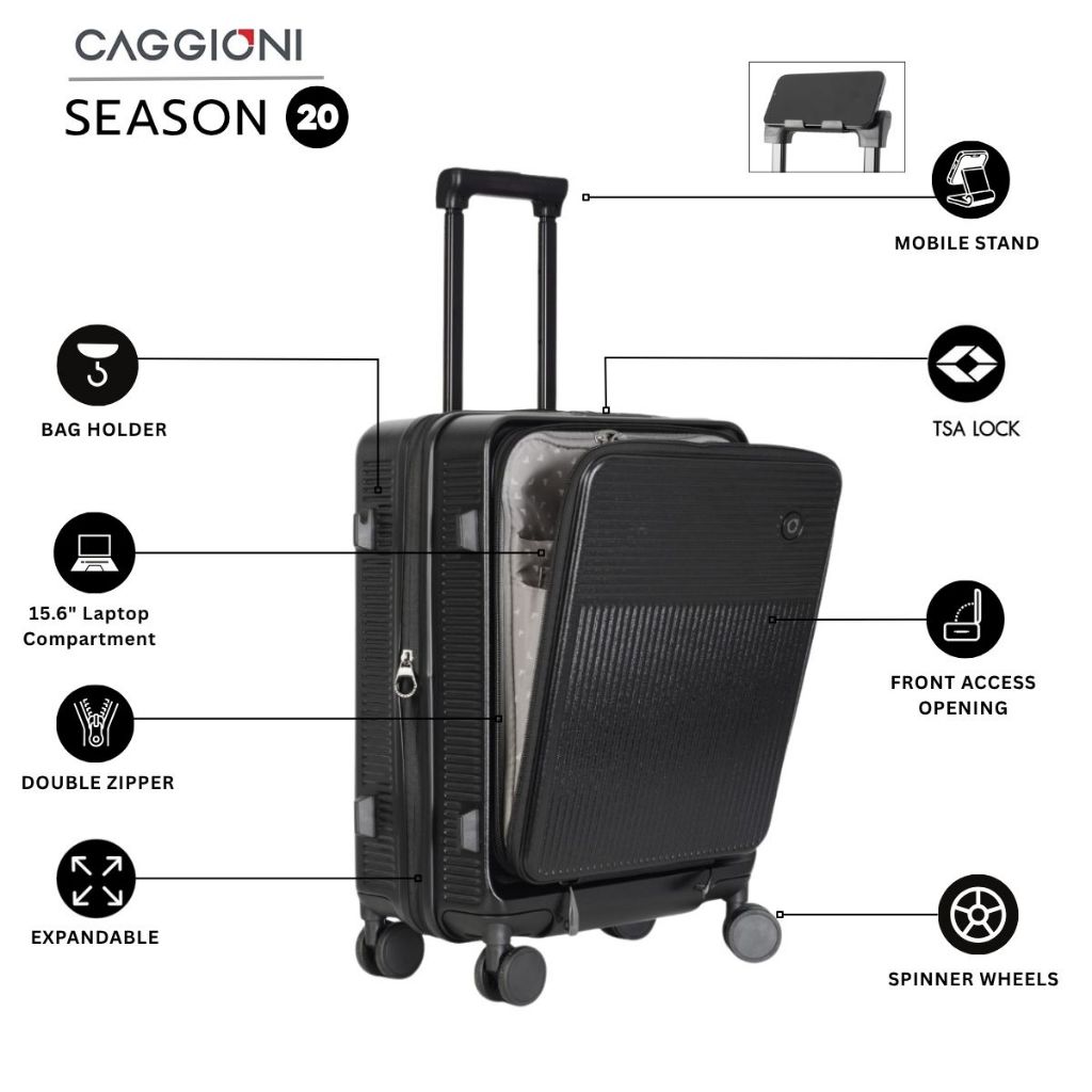 Caggioni กระเป๋าเดินทาง ฝาหน้า Fast-Access รุ่น The SEASONS (25091) ล้อคู่ TSA Lock : สีดำ Midnight Black