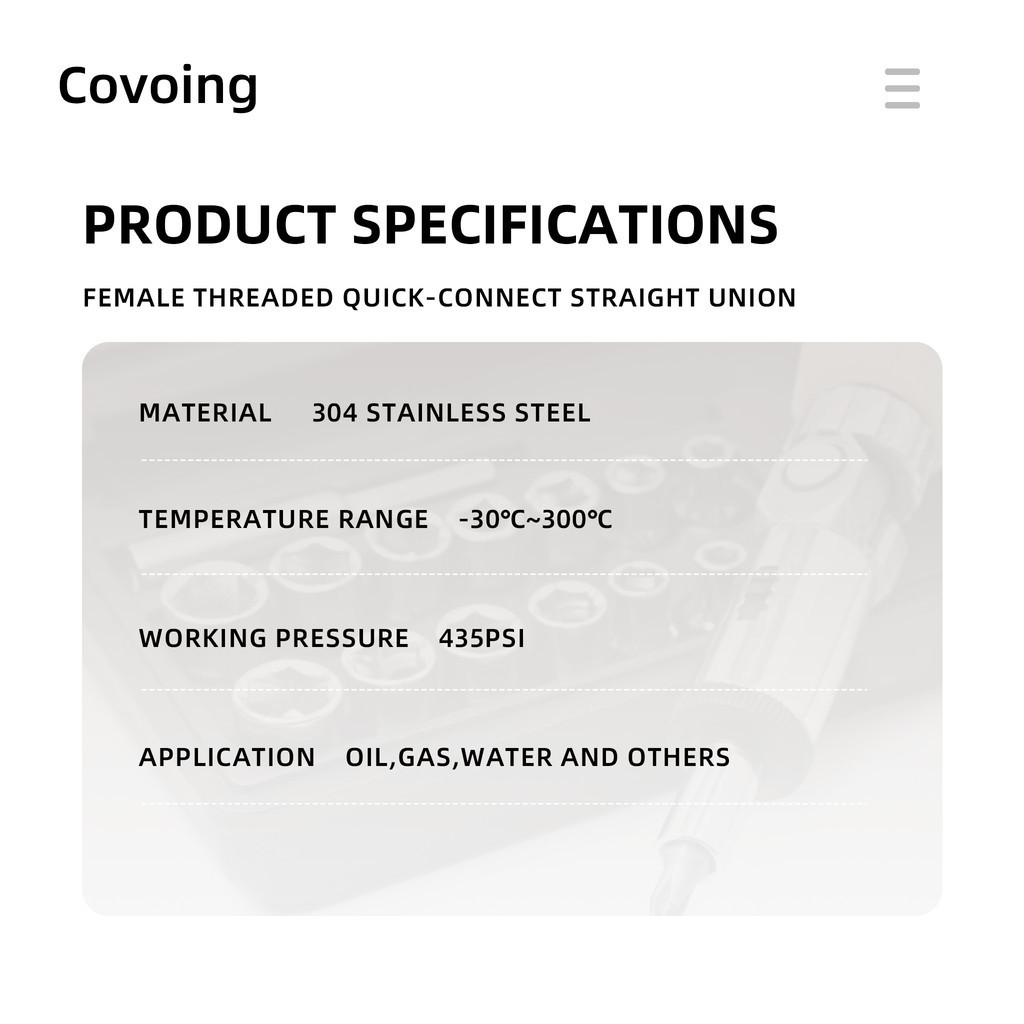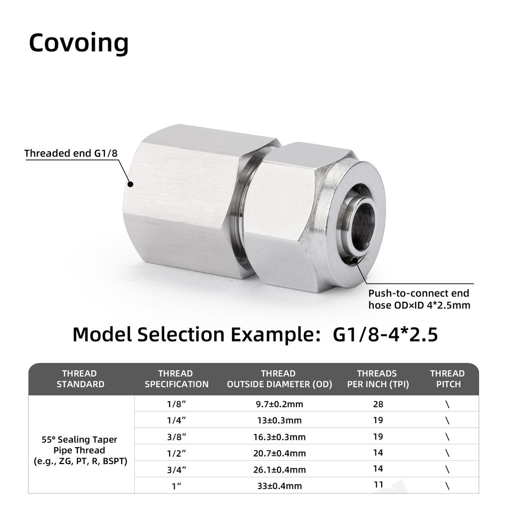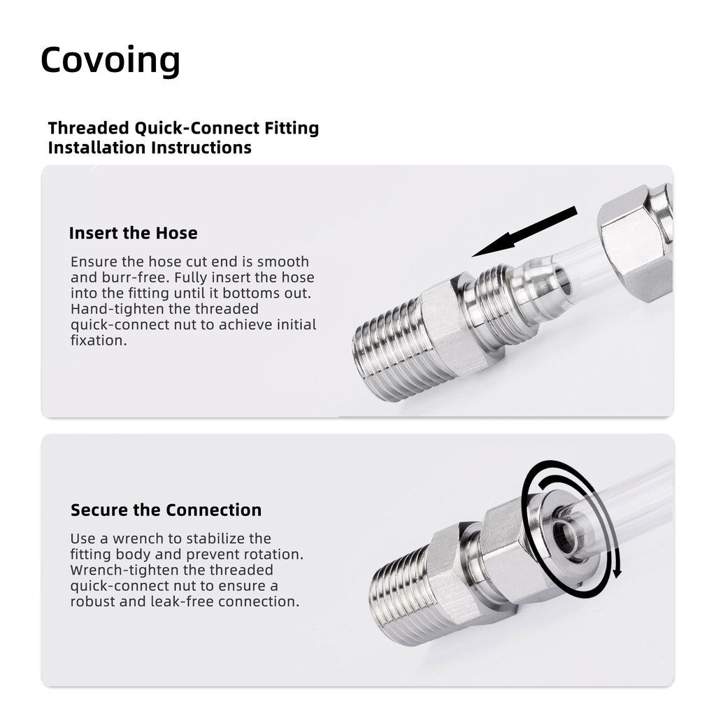 Covoing ข้อต่อลมสแตนเลส 304 แบบเกลียวเร็ว (Threaded Quick-Connect) ชนิดตรง เกลียวใน พร้อมน็อตล็อก สำหรับท่อ PU และท่อ PTFE ระบบนิวเมติก