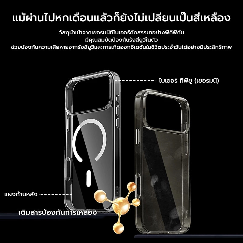 X-IT เคสแม่เหล็กสําหรับ iPhone 11 12 13 14 15 16 16e 17 air Pro Max, กันกระแทกโทรศัพท์ฝาครอบกันชน, Anti-Scratch Clear Back (ใส)