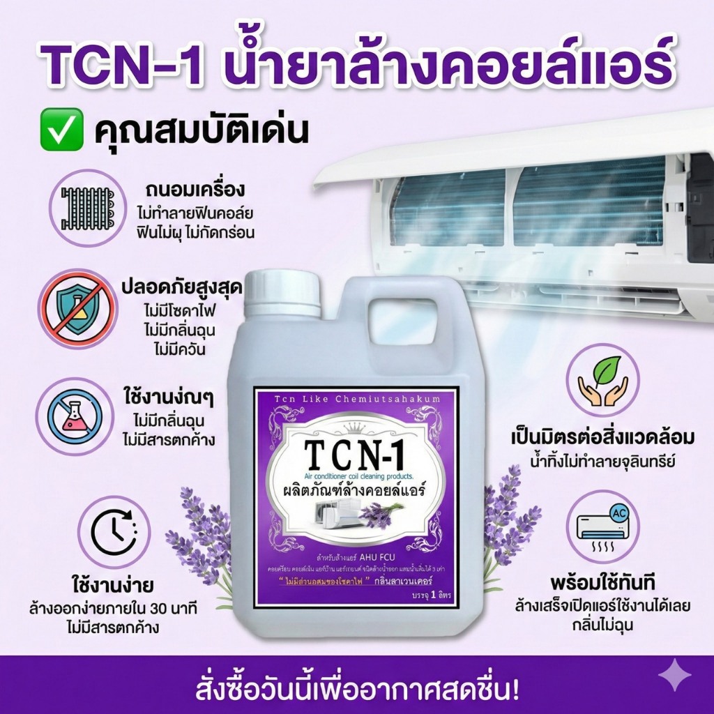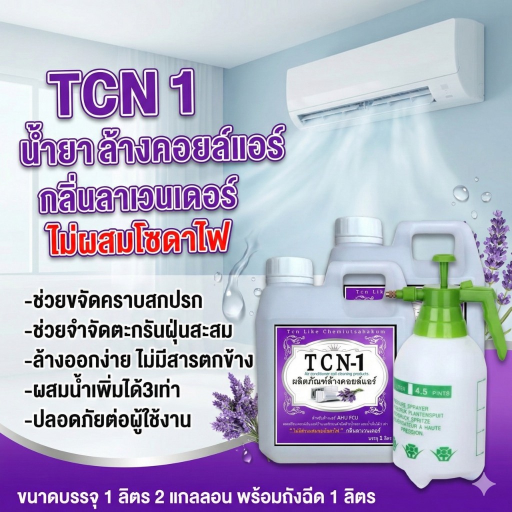 TCN1 น้ำยาล้างแอร์ ล้างคอยล์แอร์ ล้างคอยล์ขาวใส ขจัดสิ่งอุดตัน ไม่ผสมโซดาไฟ ผสมน้ำเพิ่มได้
