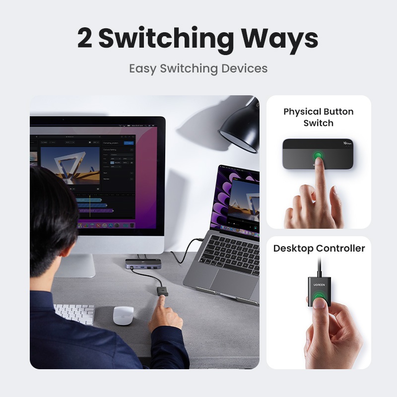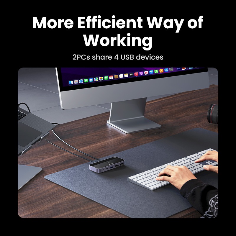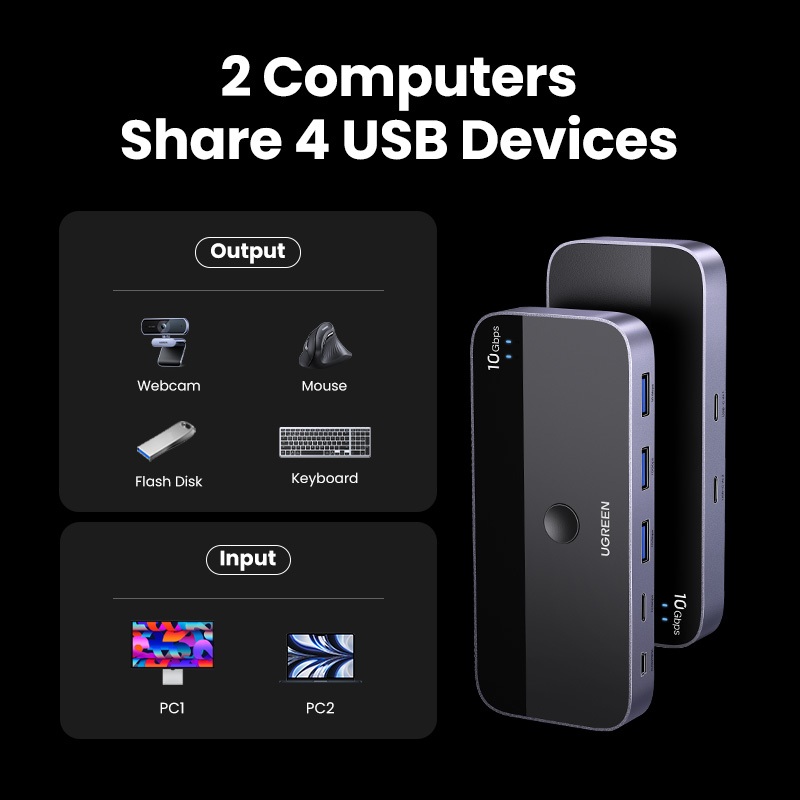 UGREEN 10Gbps USB C KVM Switch USB C 3.2 Switcher สําหรับเครื่องพิมพ์เมาส์คีย์บอร์ด PC และสแกนเนอร์ 2 PCs Sharing 4 อุปกรณ์สวิตช์ USB
