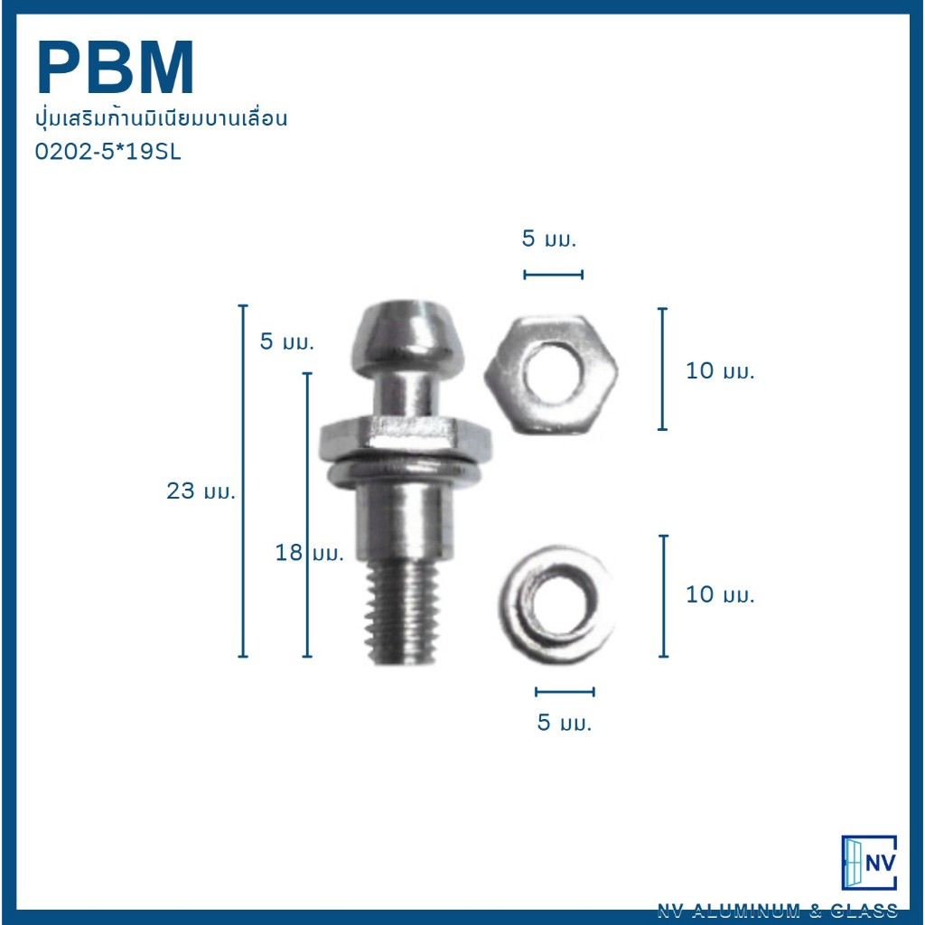 ปุ่มเสริมก้านมิเนียม บานเลื่อน PBM #0202-5*19SL