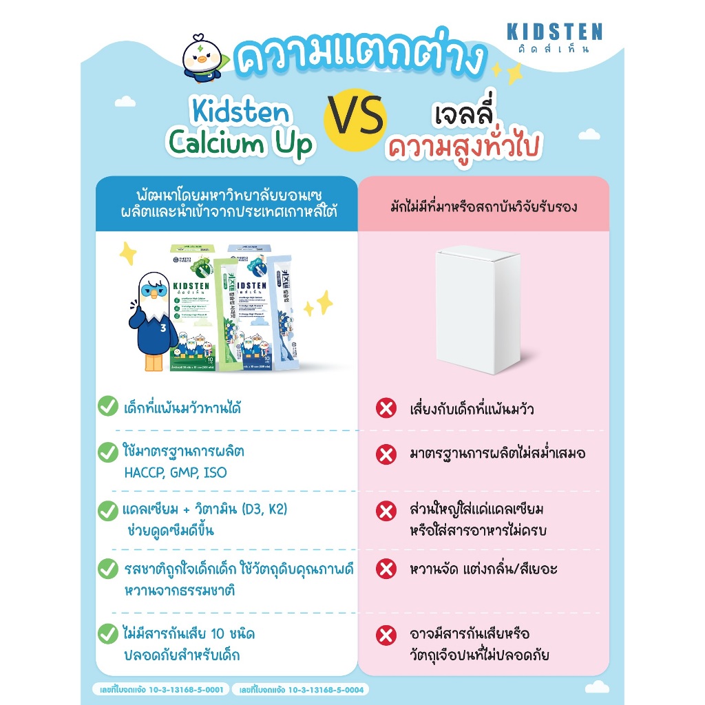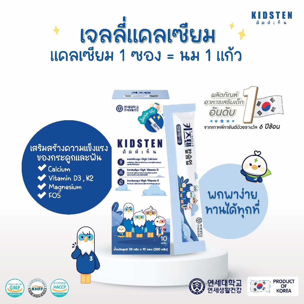รสโยเกิร์ตกล่องเล็ก (10แท่ง) KIDSTEN Cal+DMK (D3+Mg+K2) แคลเซียม+ดีมาก เจลลี่แคลเซียมเพิ่มความสูง สำหรับเด็กจากเกาหลี 🇰🇷