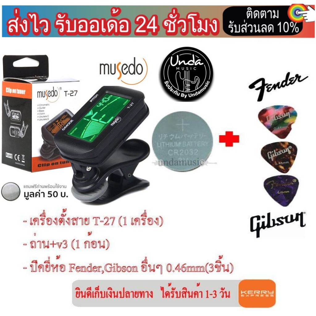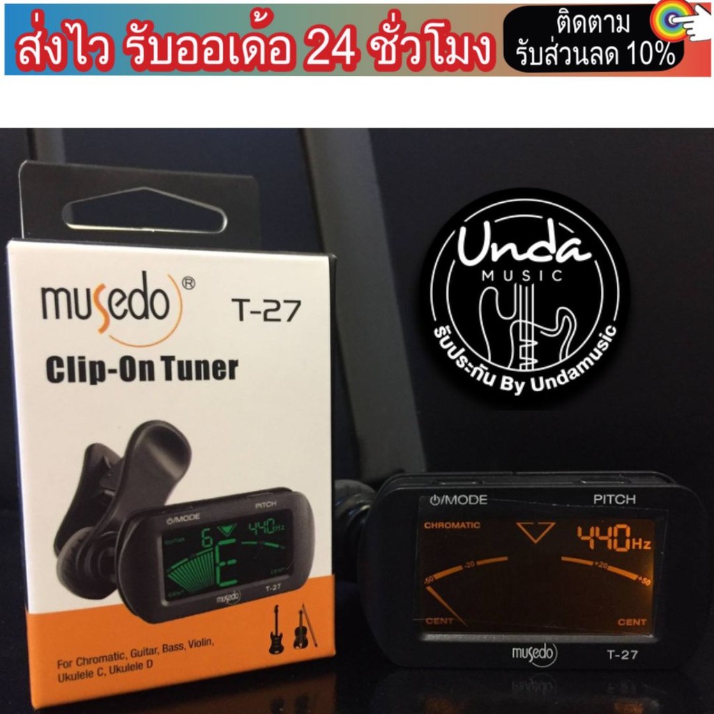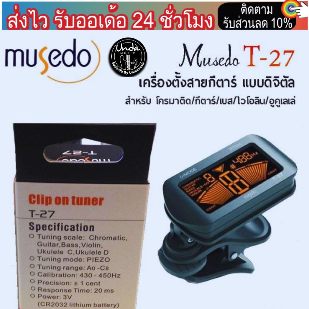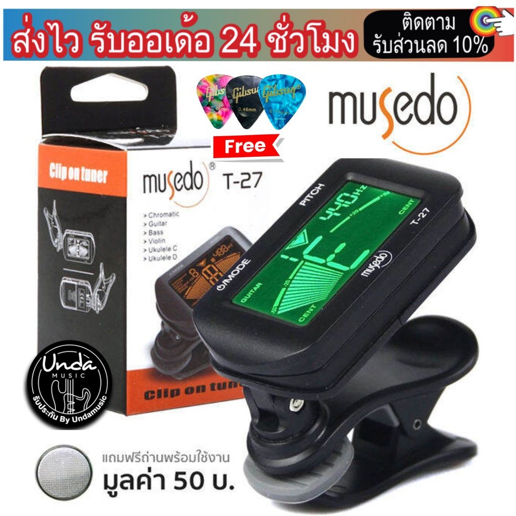 MUSEDO เครื่องตั้งสายกีตาร์ แบบดิจิตัล รุ่น T27 (ที่ตั้งสายกีตาร์, Guitar Tuner) ฟรีถ่านพร้อมใช้งาน+ ปิคยี่ห้อ (3ชิ้น)