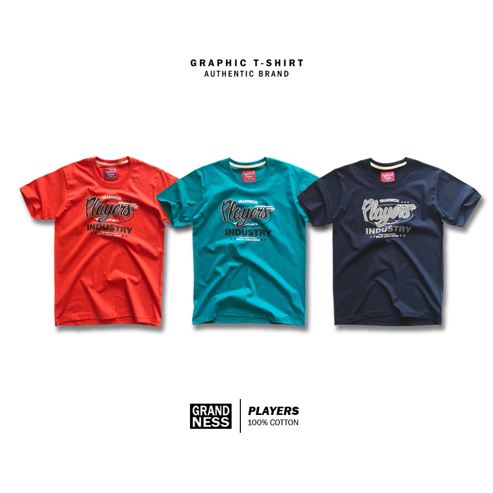 Grandness เสื้อยืดลายกราฟิก รุ่น GN132-4 ( สีส้ม/สีกรม/สีเขียวทะเล )