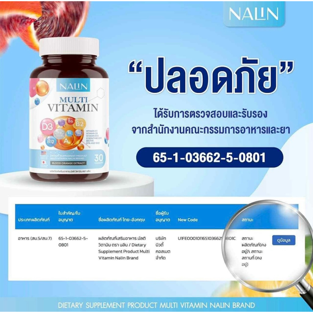 3 กระปุก 90 แคปซูล นลินมัลติวิตามิน Nalin Multi Vitamin ดูแลสุขภาพ