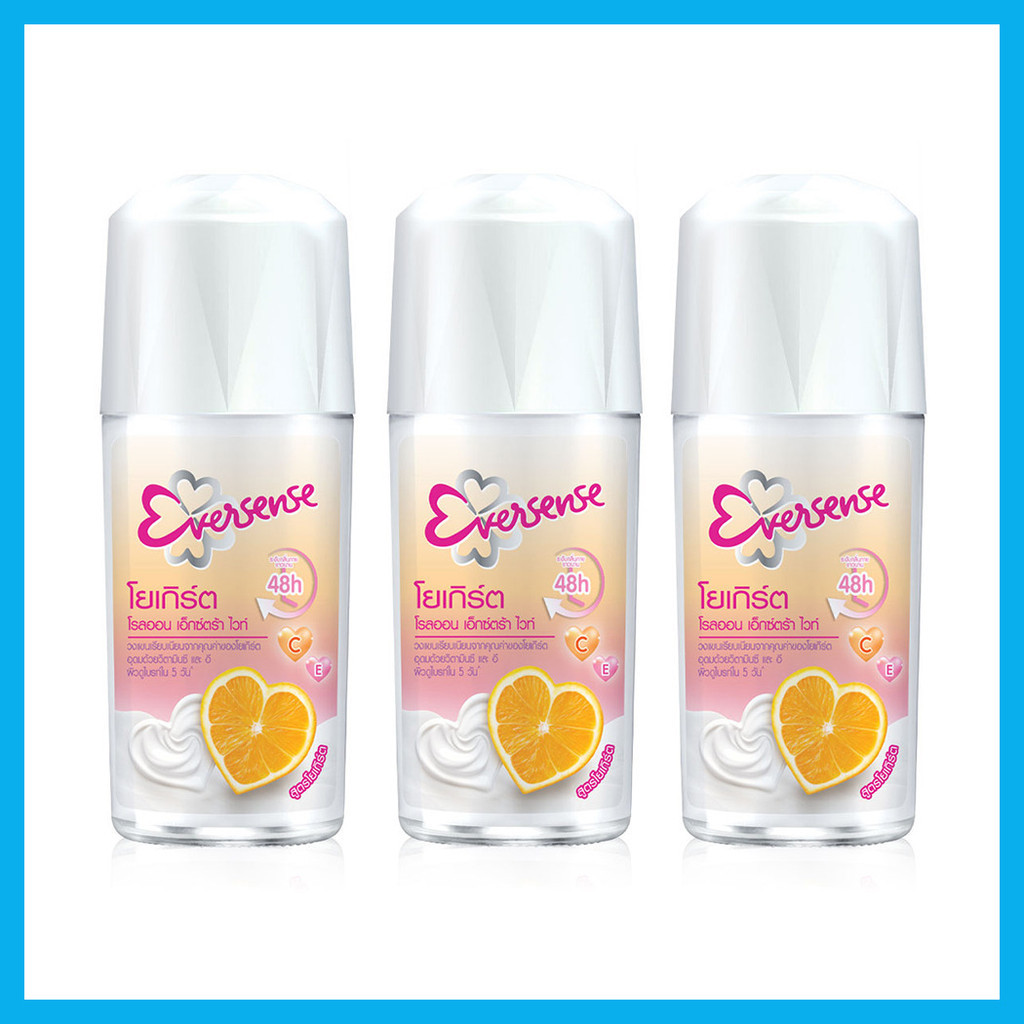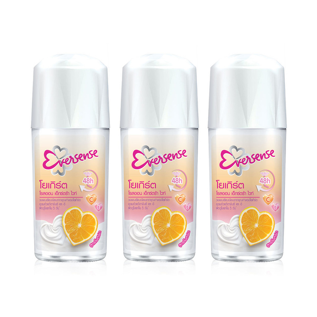 Eversense Yogurt Roll On Extra White Vit C & E [45ml x 3pcs] รลออนระงับกลิ่นกาย.