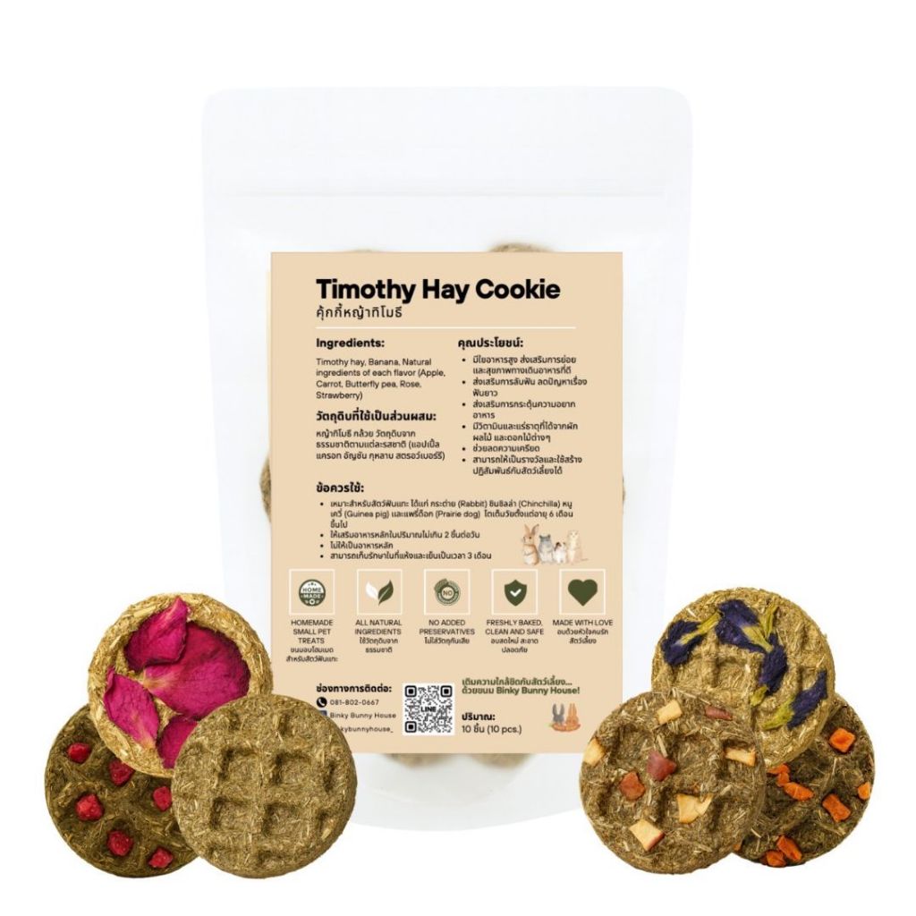 (EXP:01/07/2026) Binky Bunny House คุ้กกี้หญ้าทิโมธี (Timothy Hay Cookie) ขนมอบสำหรับกระต่ายและสัตว์ฟันแทะ (10 ชิ้น)