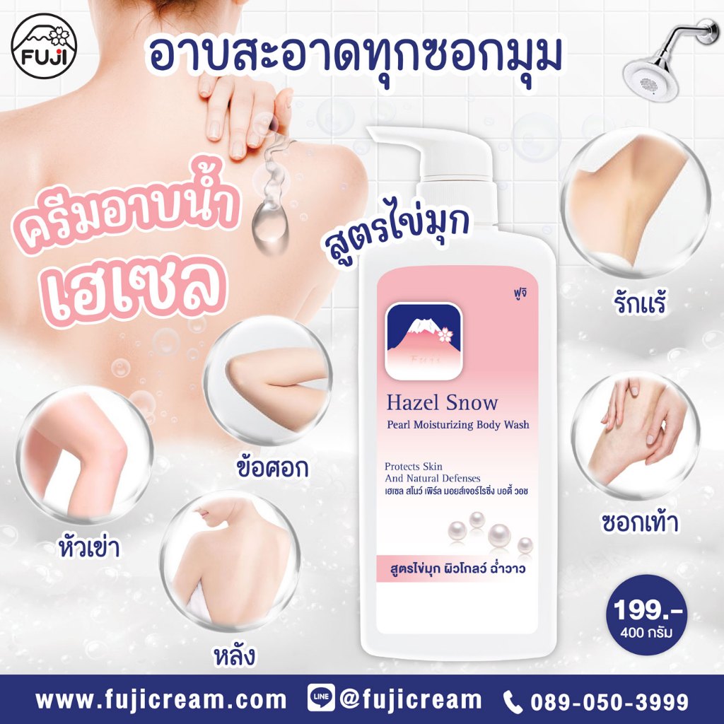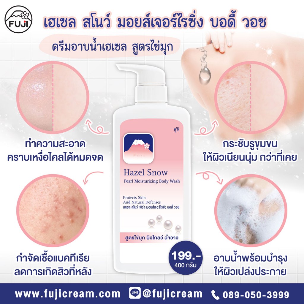 HAZEL SNOW PEARL MOISTURIZING BODY WASH ครีมอาบน้ำภูเขา ฟูจิ เฮเซล สโนว์ เพิร์ล (สูตรไข่มุก สีชมพู)
