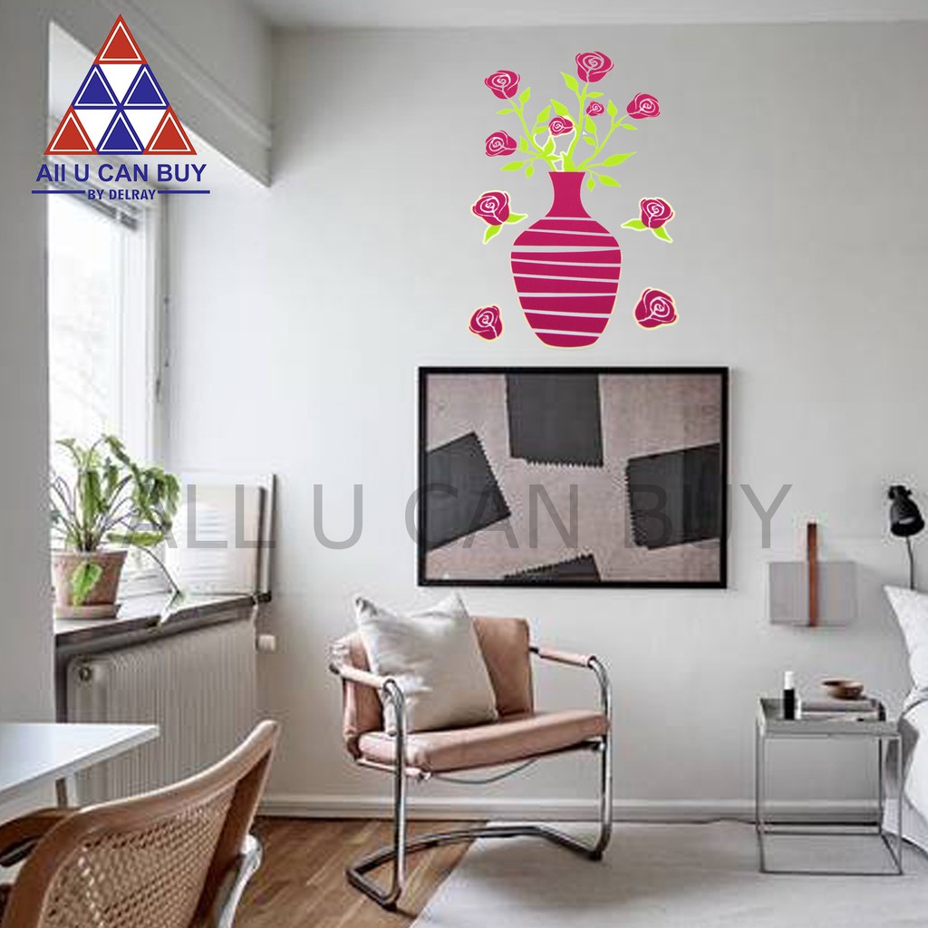 ALL U CAN BUY สติ๊กเกอร์ติดผนัง สติ๊กเกอร์สะท้อนแสงลายดอกไม้ สีเขียว-สีชมพู