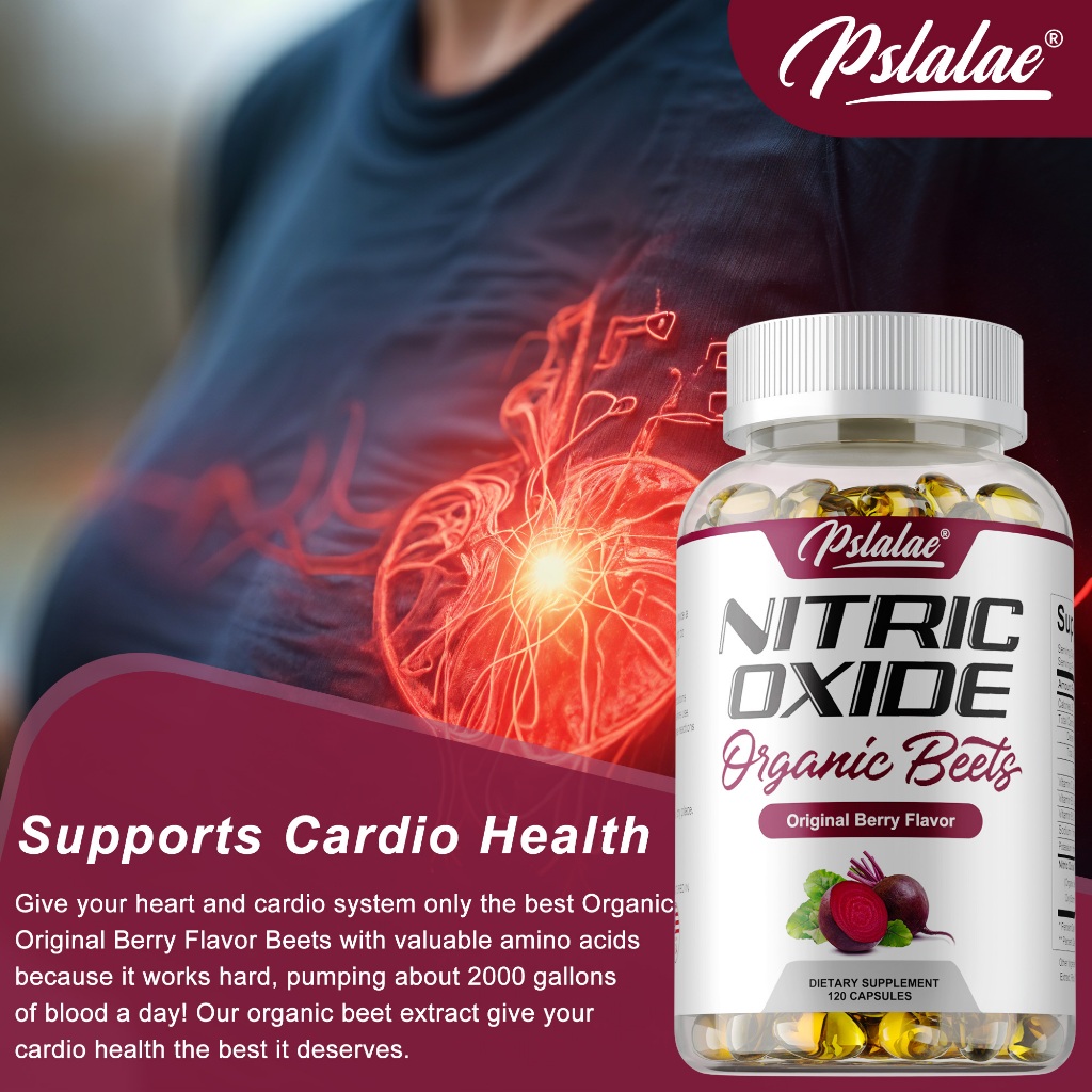 อาหารเสริมไนตริกออกไซด์ 120 ชิ้น- บีทรูทออร์แกนิกรองรับความดันโลหิตเพื่อสุขภาพ