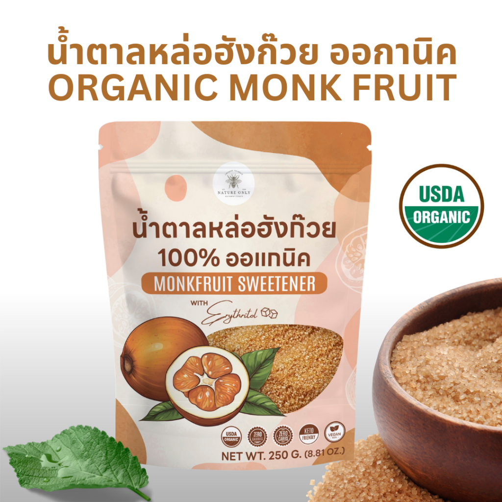 โปรโมชั่น น้ำตาลหล่อฮังก๊วย ขนาด 250 กรัม 3 ซอง แถมฟรี ไซรัปหล่อฮังก๊วย 150 กรัม ORGANIC USDA มี อย.