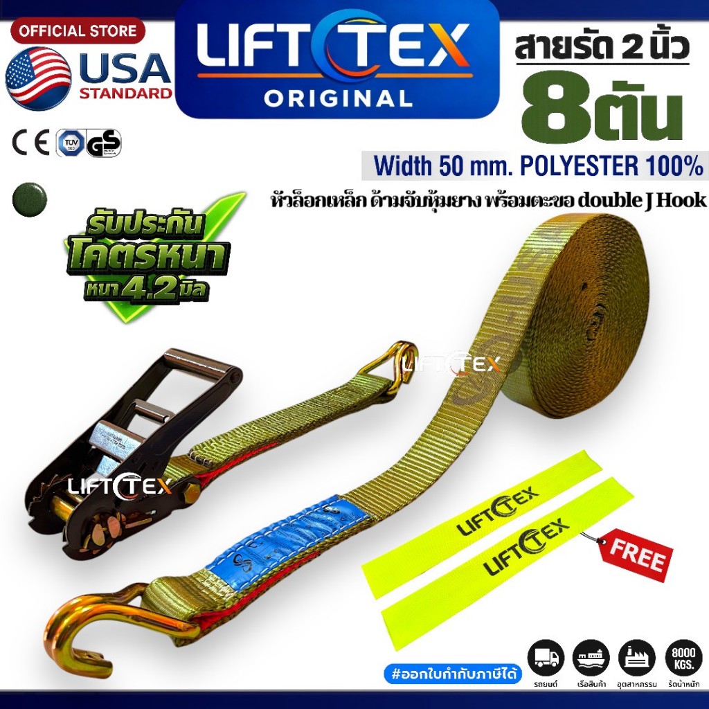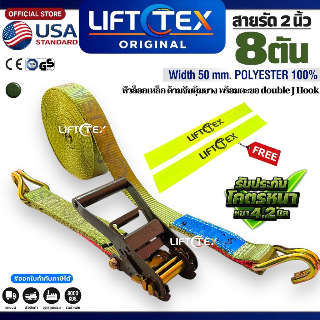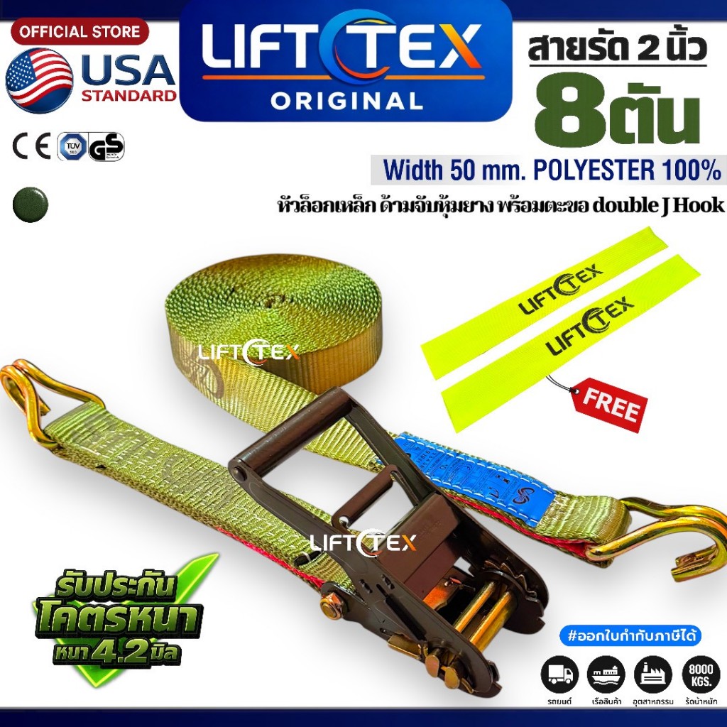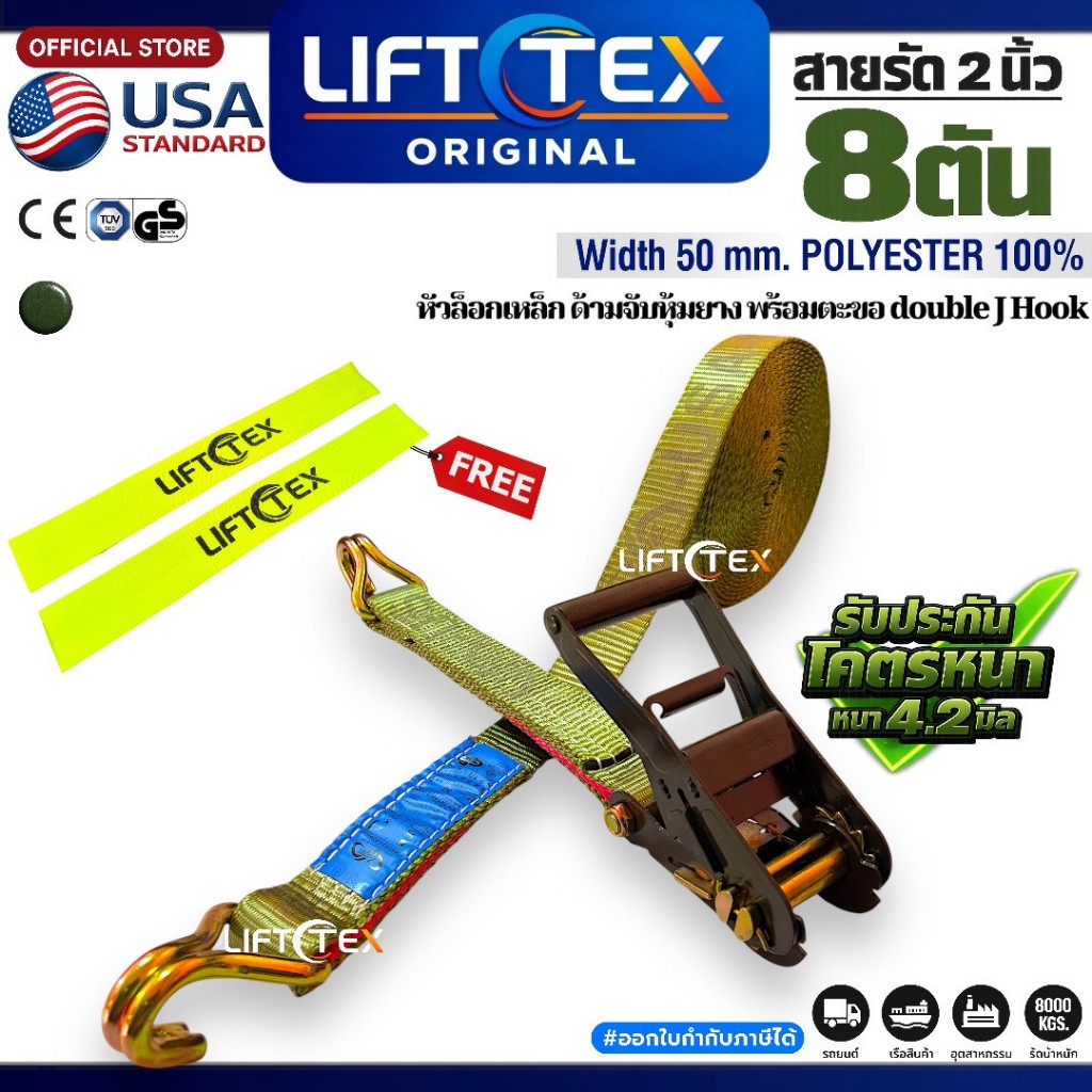 New สายรัดรถ2นิ้ว รุ่น8ตัน ครบชุดพร้อมใช้งาน เกรดA(พรีเมียม) มาตรฐานUSA หัวก๊อกแก๊กเหล็กหนาอย่างดี