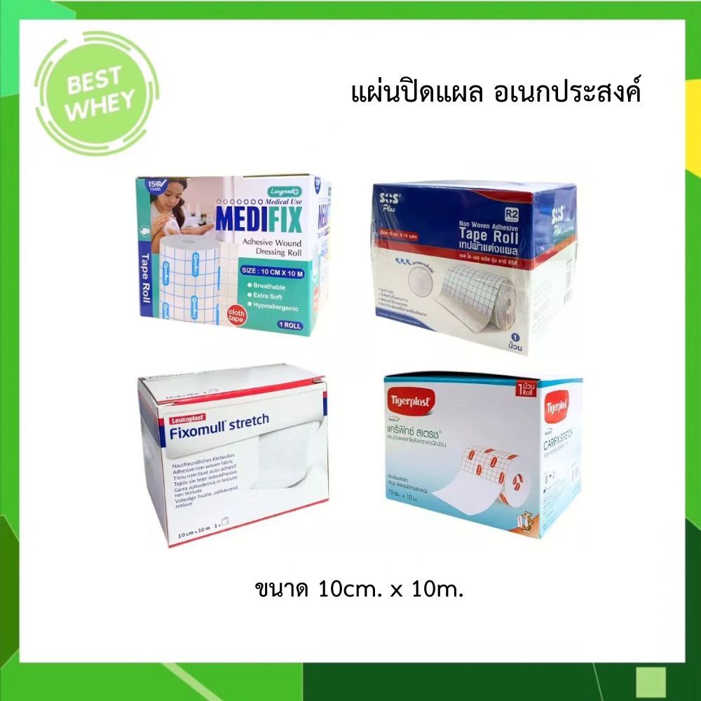 Medifix Adhensive / Fixomull Stretch / SOS Plus R2 / Tigerplast Carifix Stretch ขนาด 10cm. x 10m.