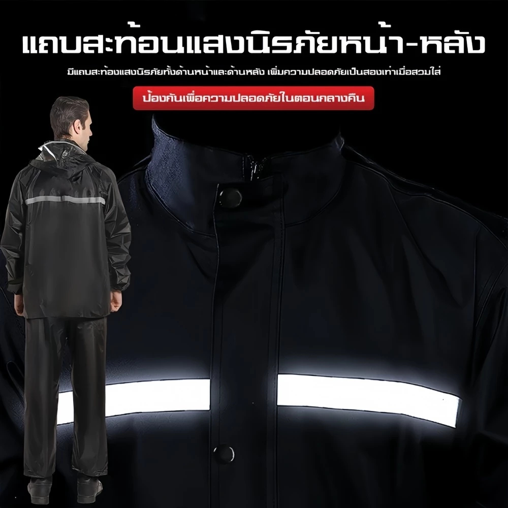 Aimi หนาขึ้น ชุดกันฝน raincoat เสื้อกันฝน มีแถบสะท้อนแสง รุ่นหมวกติดเสื้อ ชุดกันฝนกันน้ำ ผ้ากันฝน