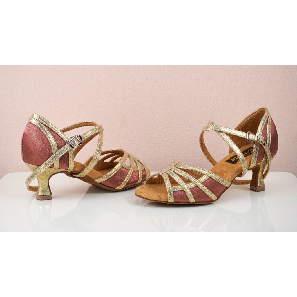 รองเท้าลีลาศ และ Salsa Dance Shoes Oriana EX-L36 ผ้าซาตินสีน้ำตาล ส้นสูง 2 นิ้ว