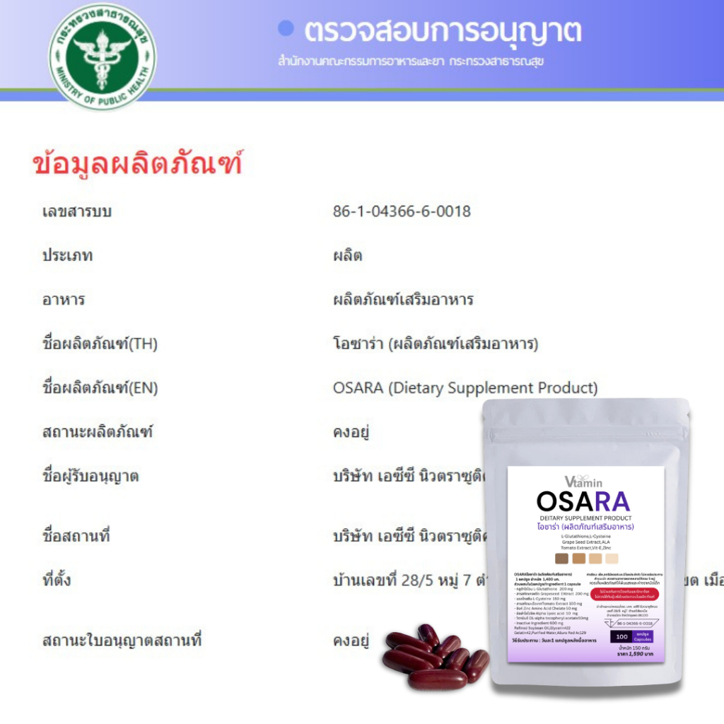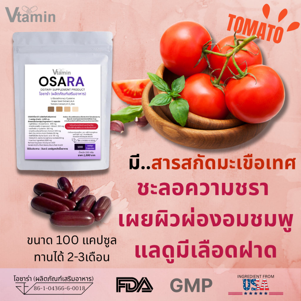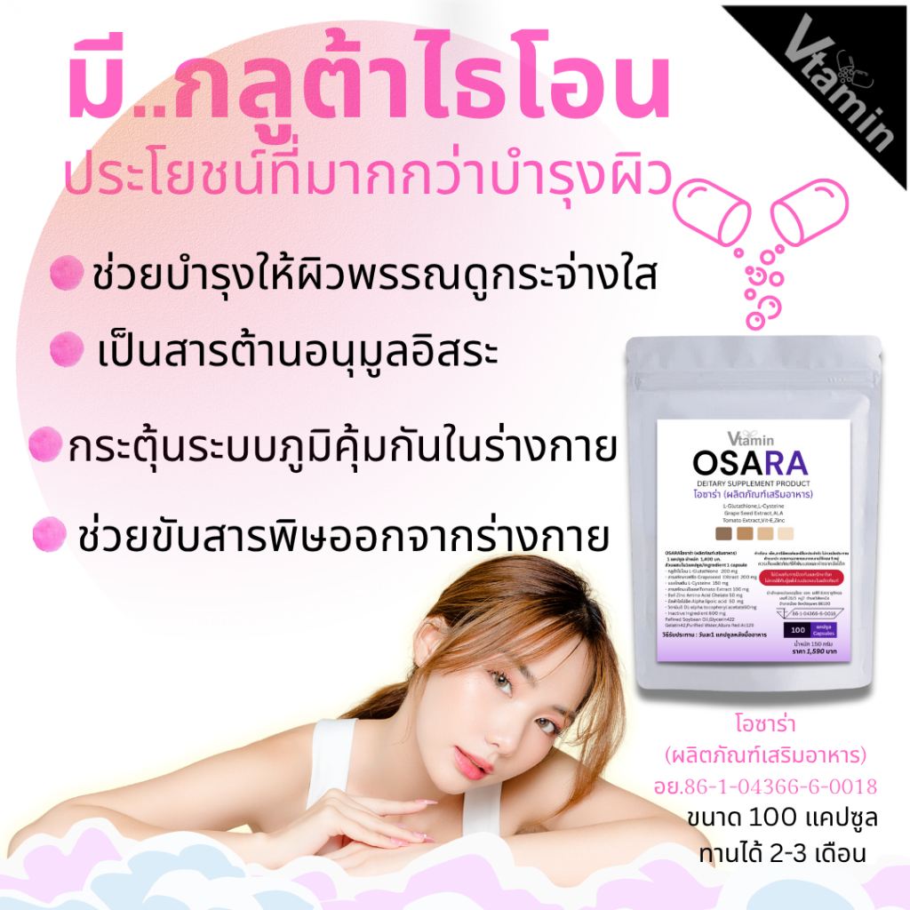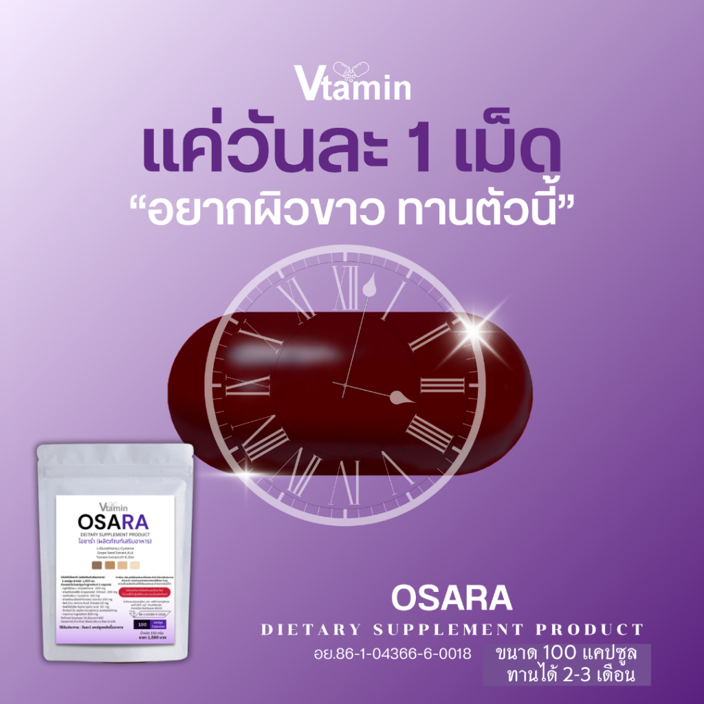 (100เม็ด)OSARAโอซาร่าจากVtaminผิวคล้ำแนะนำให้ทานตัวนี้เลยค่ะทานได้นาน2-3เดือน