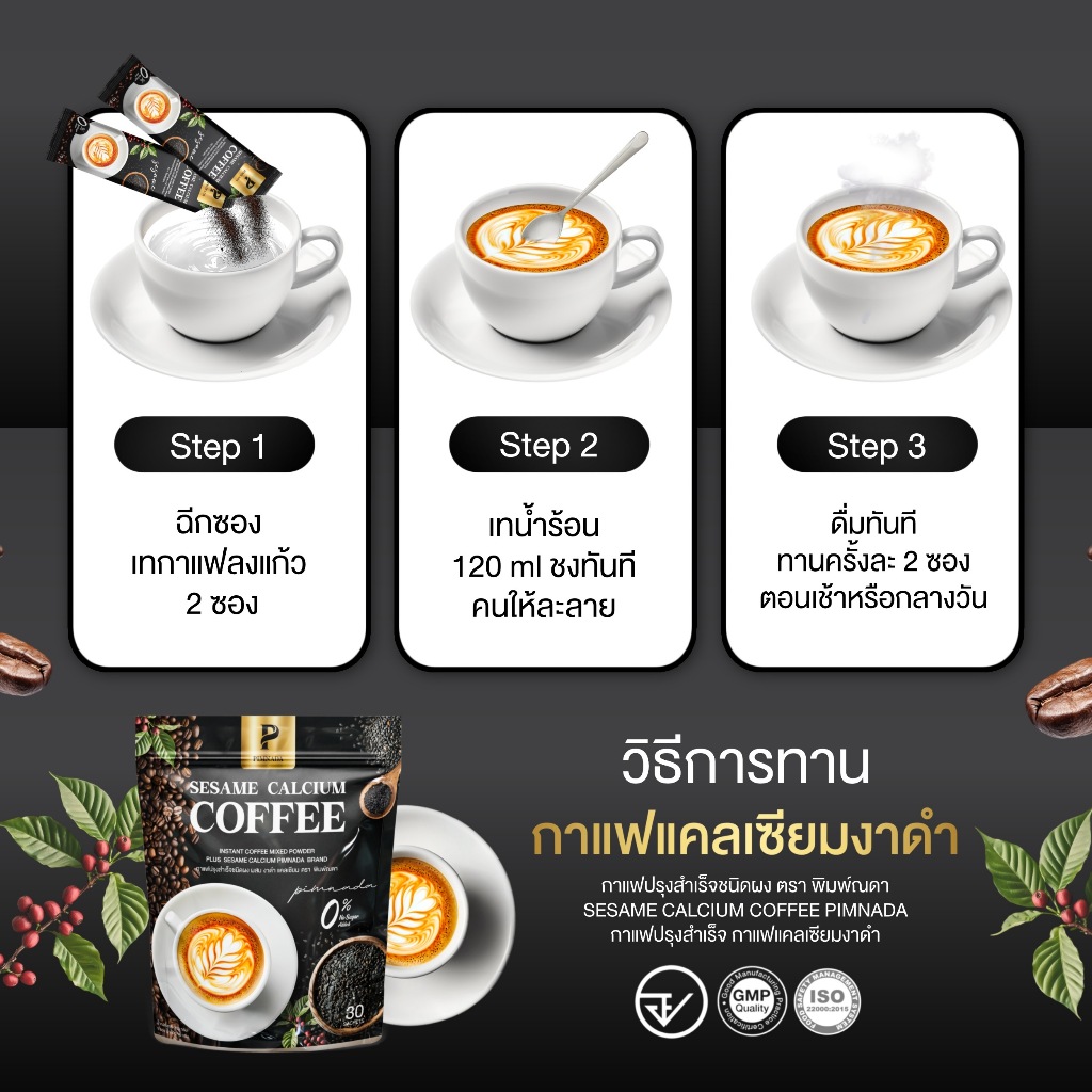 (สาขา กทม ) กาแฟงาดำ ผสม แคลเซียม พิมพ์ณดา Sesame calcium coffee กาแฟปรุงสำเร็จ ไม่มีน้ำตาล