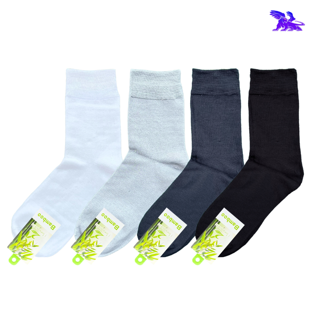 Bamboo Socks ( 12 คู่ ) ผลิตจากเส้นใยไผ่ l ถุงเท้าข้อยาว l สีพื้น