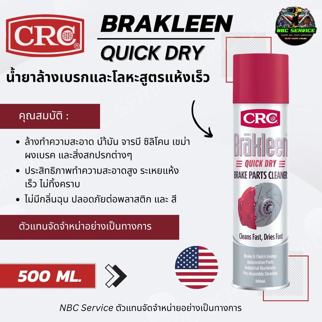 CRC Brakleen Quick Dry น้ำยาล้างเบรกและโลหะสูตรแห้งเร็ว 500 มล. ประสิทธิภาพสูง แห้งเร็ว ไม่ทิ้งคราบ ปลอดภัยต่อพลาสติก สี