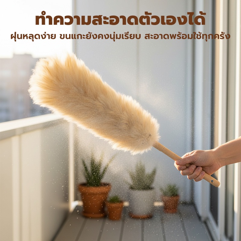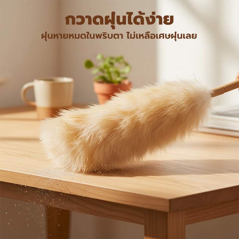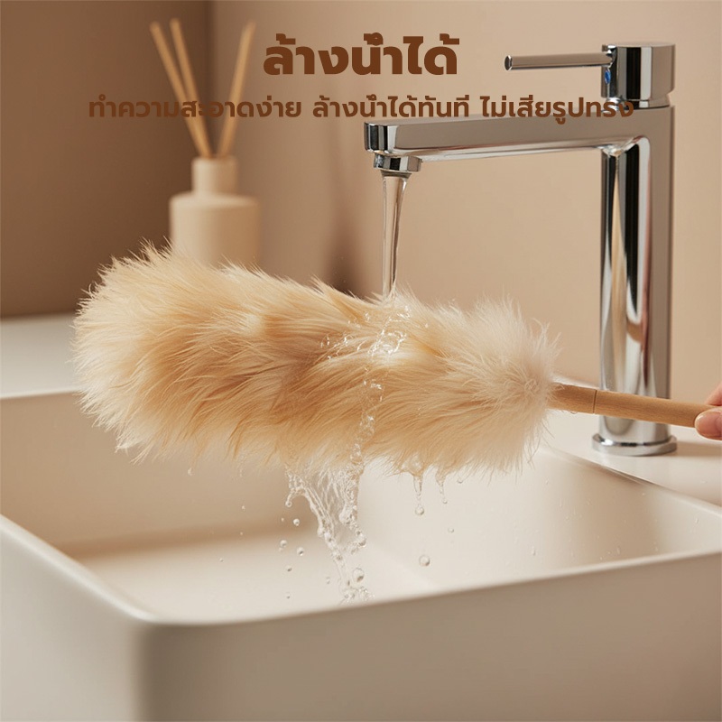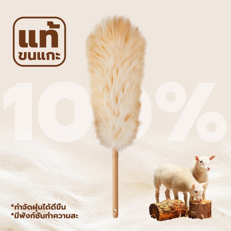 GREENIKA ไม้ปัดฝุ่นขนแกะแท้ ขนหนาแน่น กำจัดฝุ่นแรงสูง ไม่ทำลายพื้นผิว ใช้งานได้ทั้งในรถและที่บ้าน