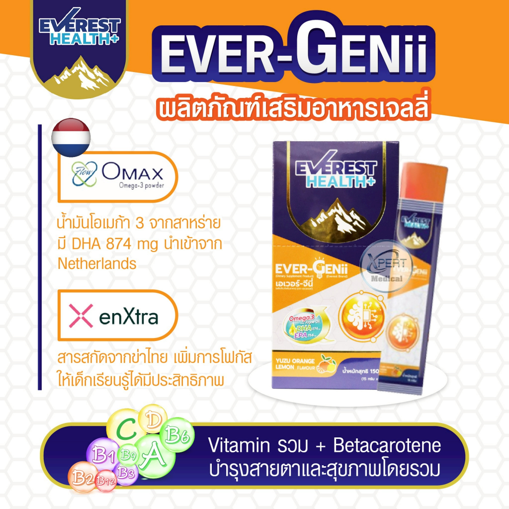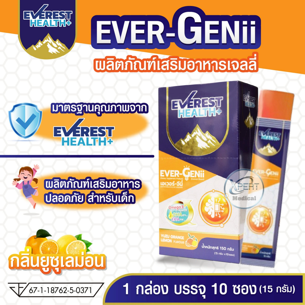 Everest Health+ EVER-GENii เยลลี่บำรุงสมอง สำหรับเด็ก 3–12 ปี รสยูซุ–เลมอน 10 ซอง