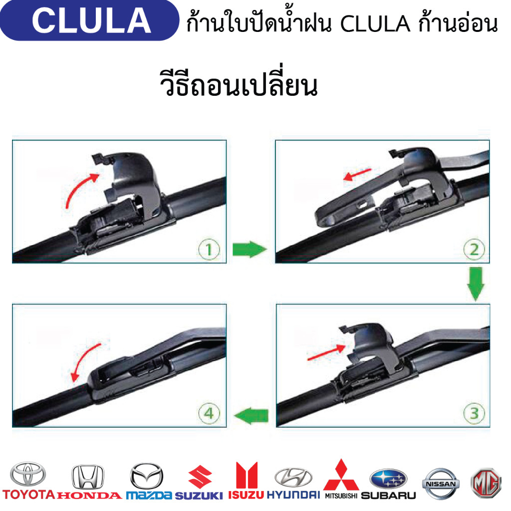 ก้าน+ใบปัดน้ำฝน พร้อมใช้ ก้านอ่อนไร้โครง ยี้ห้อ CLULA C916 TOYOTA โตโยต้า ทุกรุ่น =2กล่อง/2ชิ้น