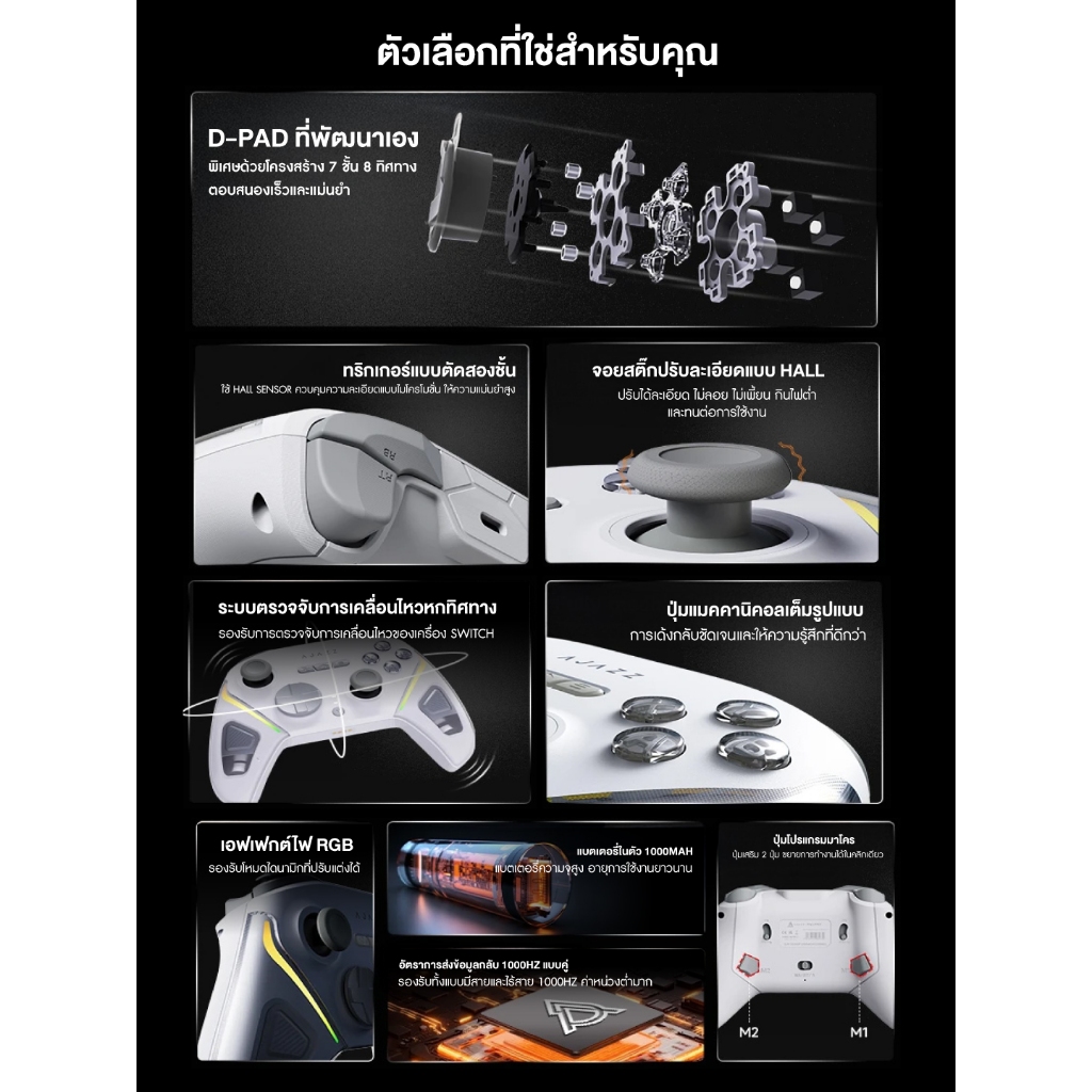 จอยเกมมิ่ง Ajazz GP100 / GP100SET Tri-Mod RGB Wireless Charging JoyStick รับประกัน 1 ปี