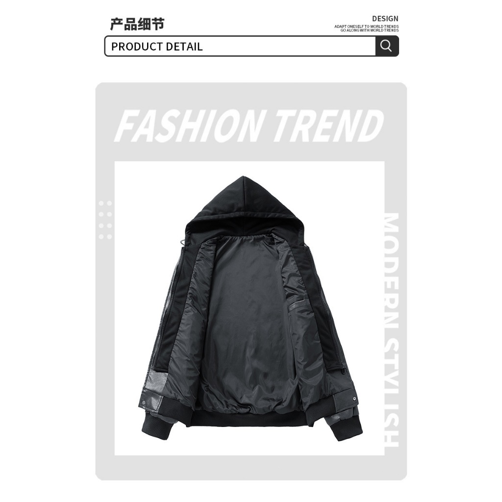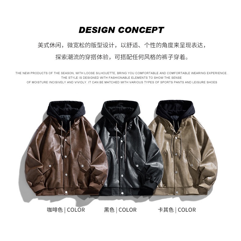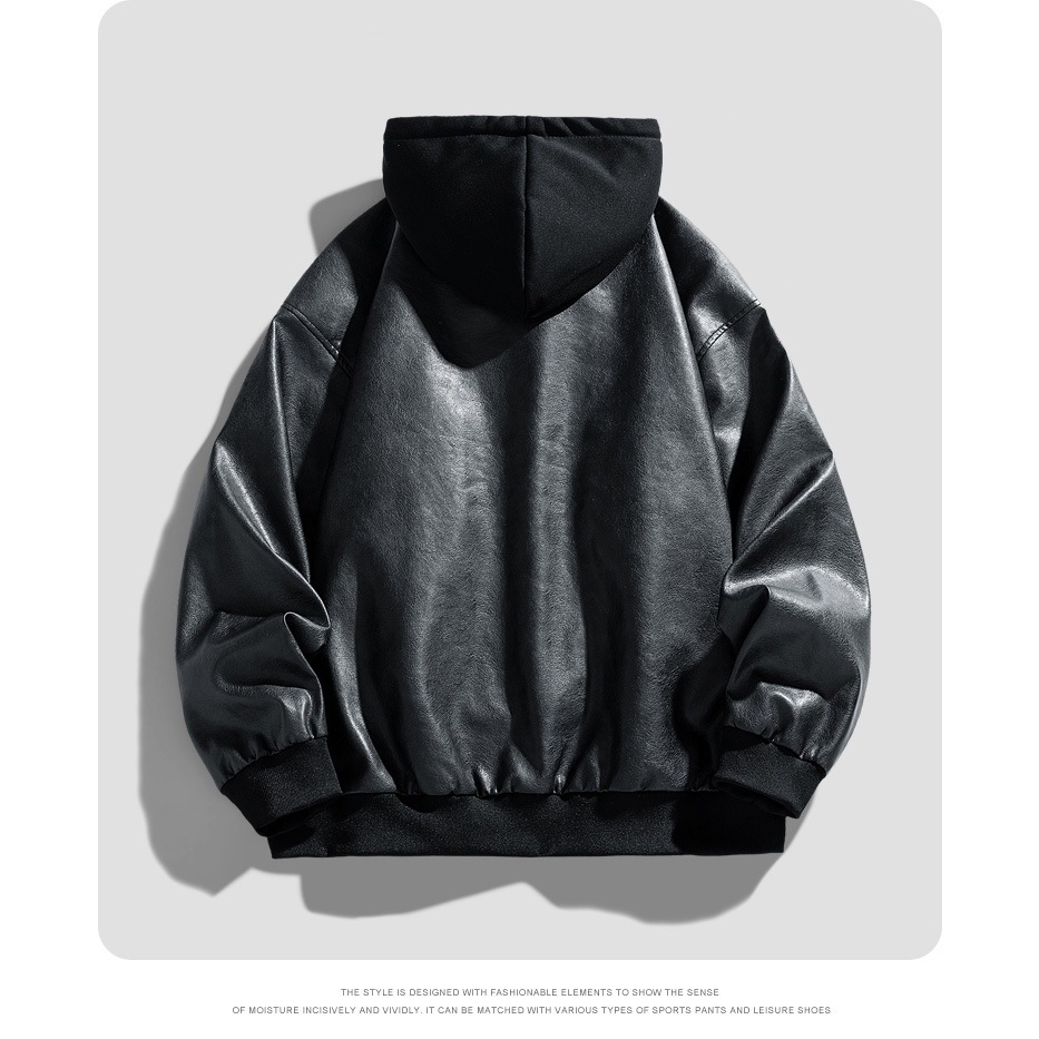 Fuguiniao แจ็คเก็ตหนังมีฮู้ดอินเทรนด์ของผู้ชายสองคนปลอมฤดูใบไม้ผลิและฤดูใบไม้ร่วงใหม่ที่ใช้งานได้