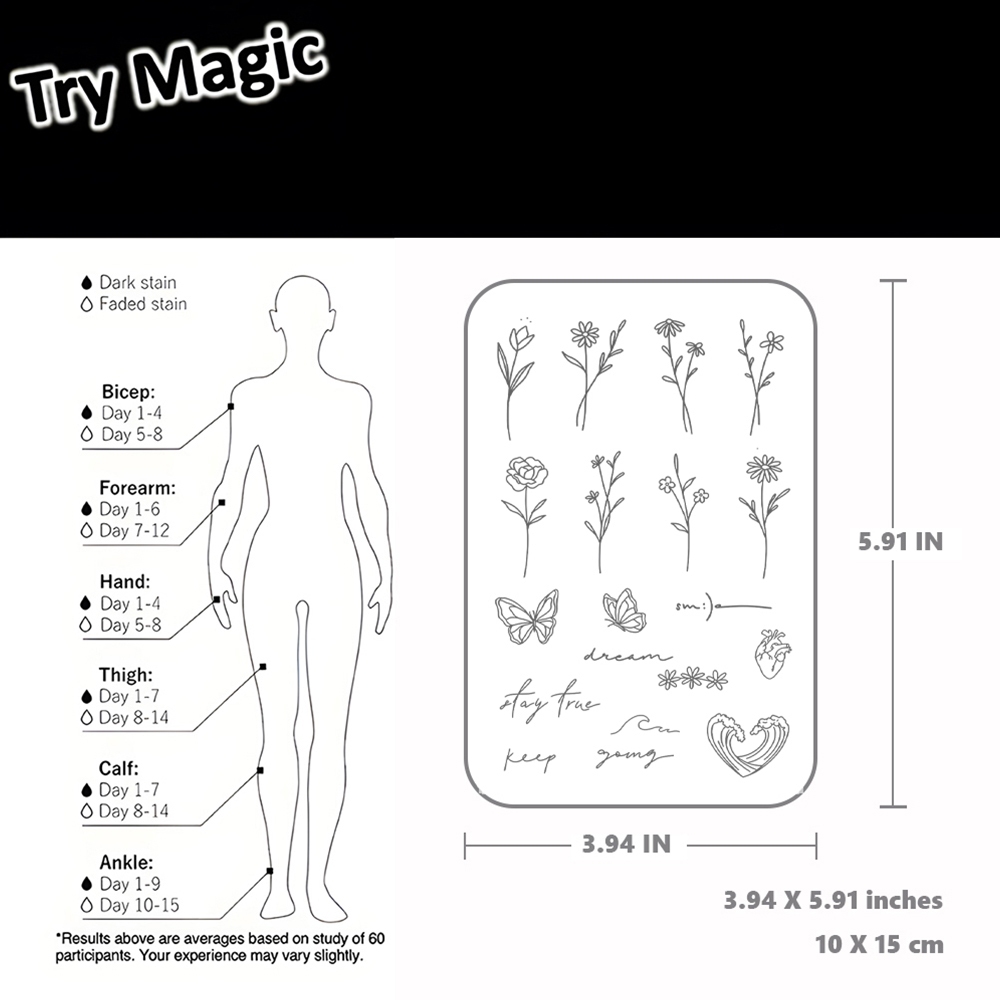 สติกเกอร์สักชั่วคราวลายดอกไม้ ติดทนนาน 15 วัน กันน้ำได้ดี