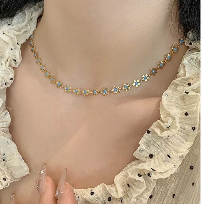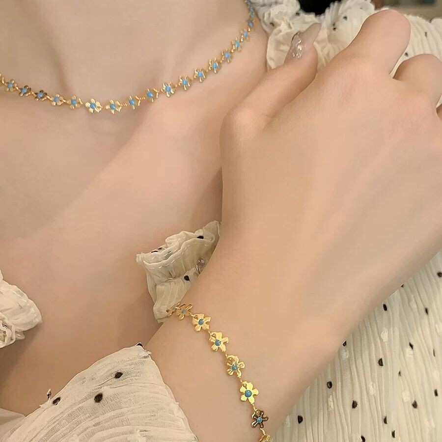 [GG] Daisy Flower Necklace Oil Drip Small Flower Bracelet เลียนแบบภูมิแพ้ Non-Fading