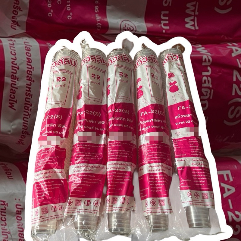 แก้ว 22 ออนซ์ สลิม ปาก 95 ตรา FPC( 5 แถว ) 250ใบ