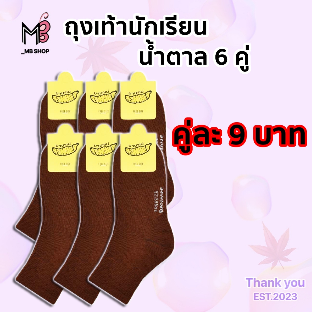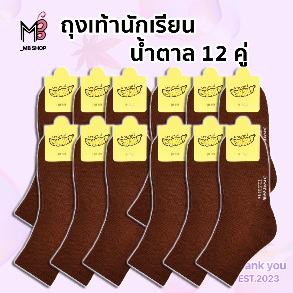 ถุงเท้านักเรียน ชาย สีน้ำตาล ข้อกลาง มีไซร์4-6/5-7/7-9/9-12ฟรีไซร์ (Banane น้ำตาล)