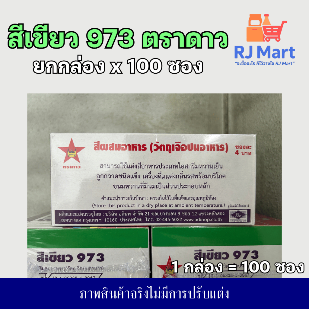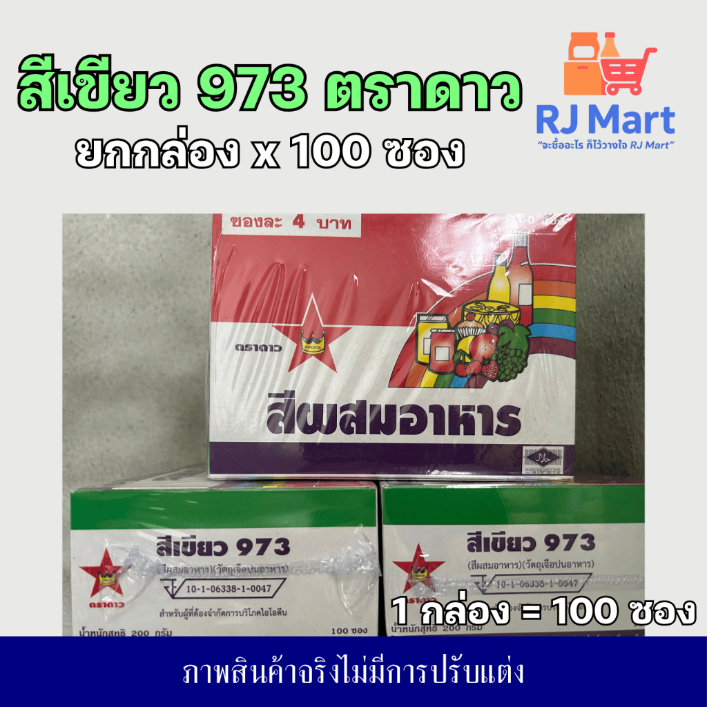 [ยกกล่อง] สีผสมอาหาร ตราดาว สีเขียว 973 (100 ซอง) x 1 กล่อง