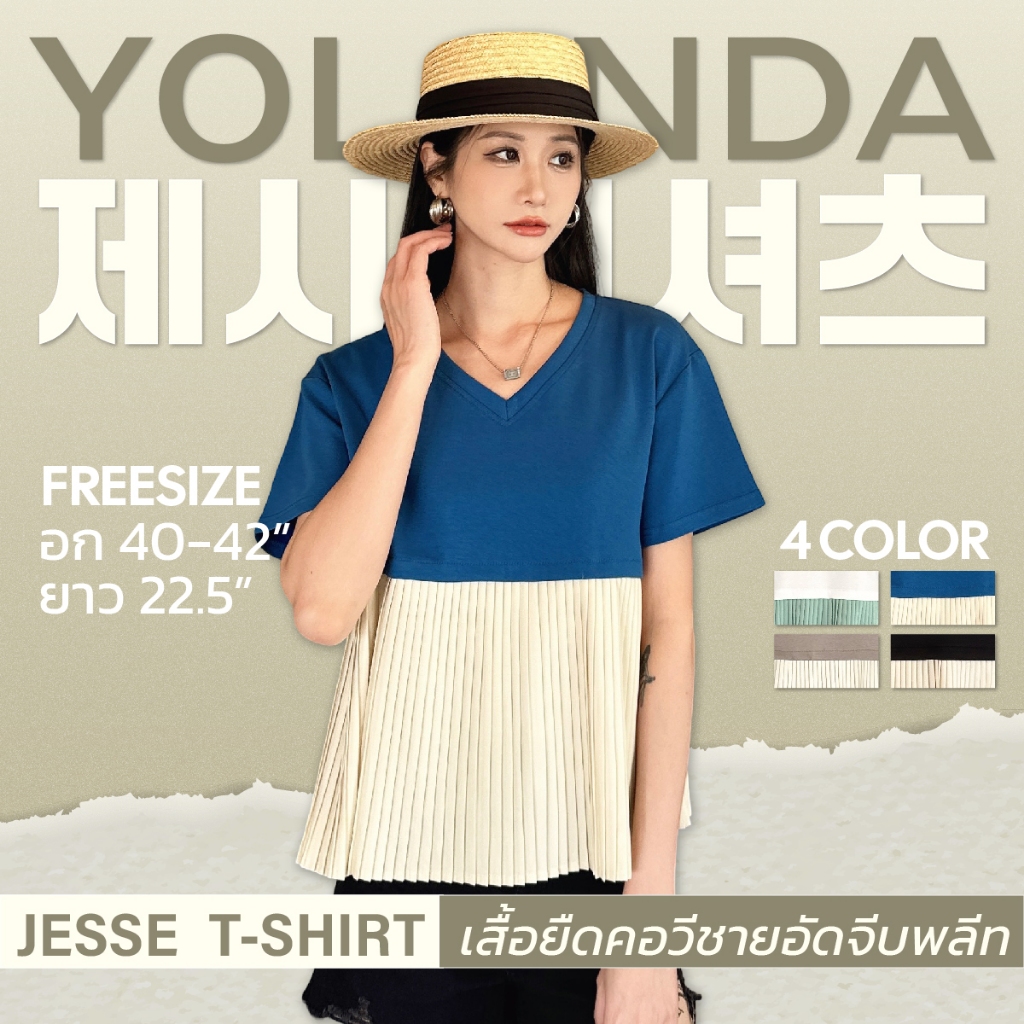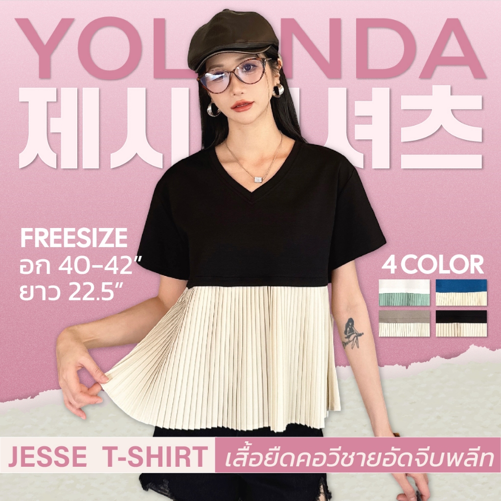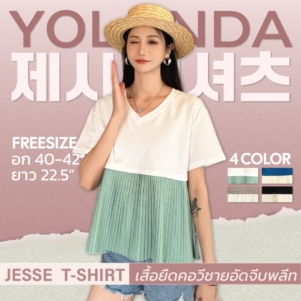 Yolanda เสื้อยืดทูโทน คอวี แขนสั้น ชายอัดจีบพลีท ทรงสวย ผ้านุ่นใส่สบาย เสื้อคุณหนูไฮโซ สไสล์เกาหลี แมทง่ายกับทุกลุค 3883