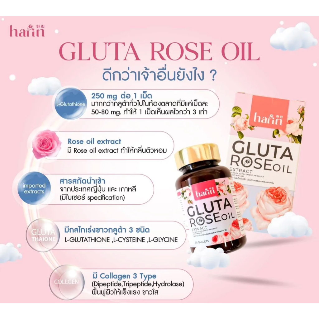 HARIN GLUTA ROSE OIL ตัวหอม สว่างใส 1 แถม 1
