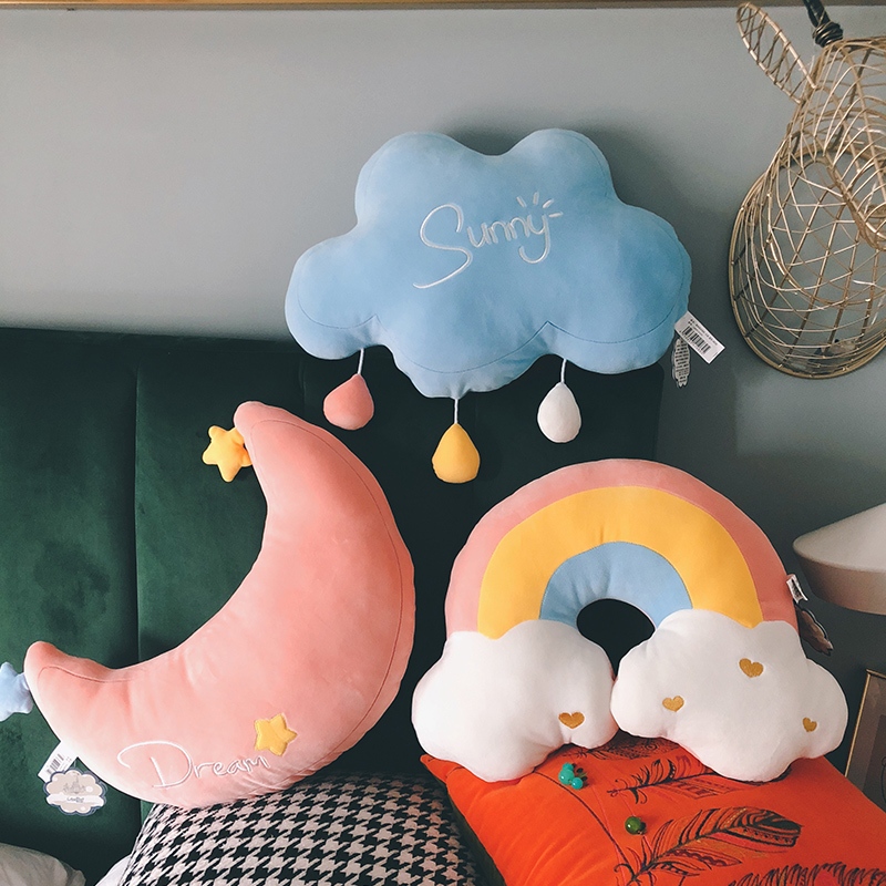 หมอนดาวนุ่มรูปการ์ตูน ดาว พระจันทร์ สายรุ้ง ของเล่นตุ๊กตา หมอน