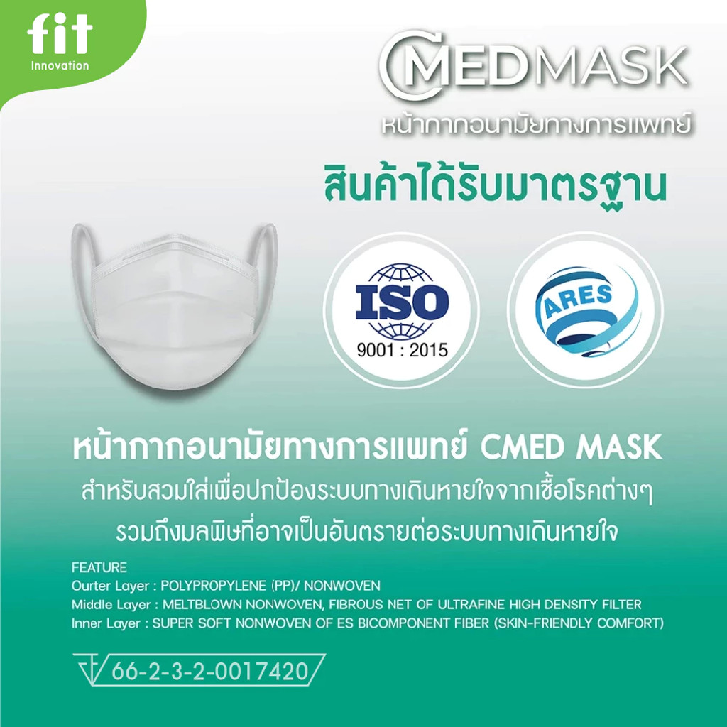 CMED MASK Medical Mask 3 Layers Protection ซีเมด มาสก์ หน้ากากอนามัยทางการแพทย์ [30 ชิ้น] หน้ากาก อนามัย กรอง 3 ชั้น ...