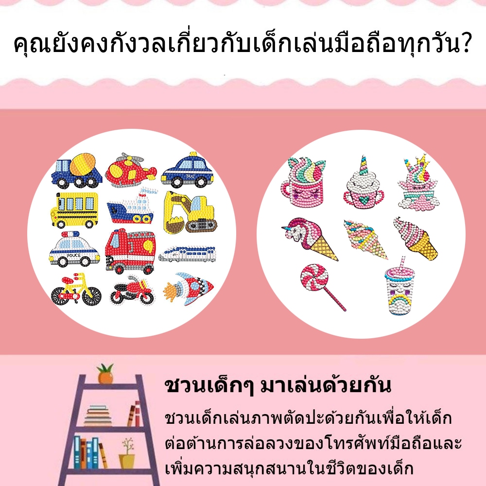 สติ๊กเกอร์การ์ตูนเพชรชุดสติ๊กเกอร์มินิ ทําเอง ของเล่นเพื่อการศึกษาสําหรับเด็กหญิงและเด็กชาย