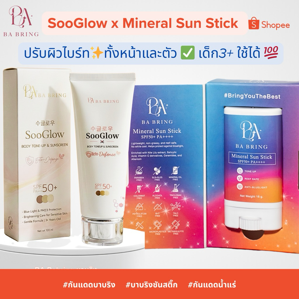 [Duo set] ผิวออร่าหน้าผ่อง BA BABRING ✨ บาบริง กันแดดสติ๊ก Mineral Sun Stick + Soo Glow กันแดดตัว โทนอัพ 3+✅ SPF50+