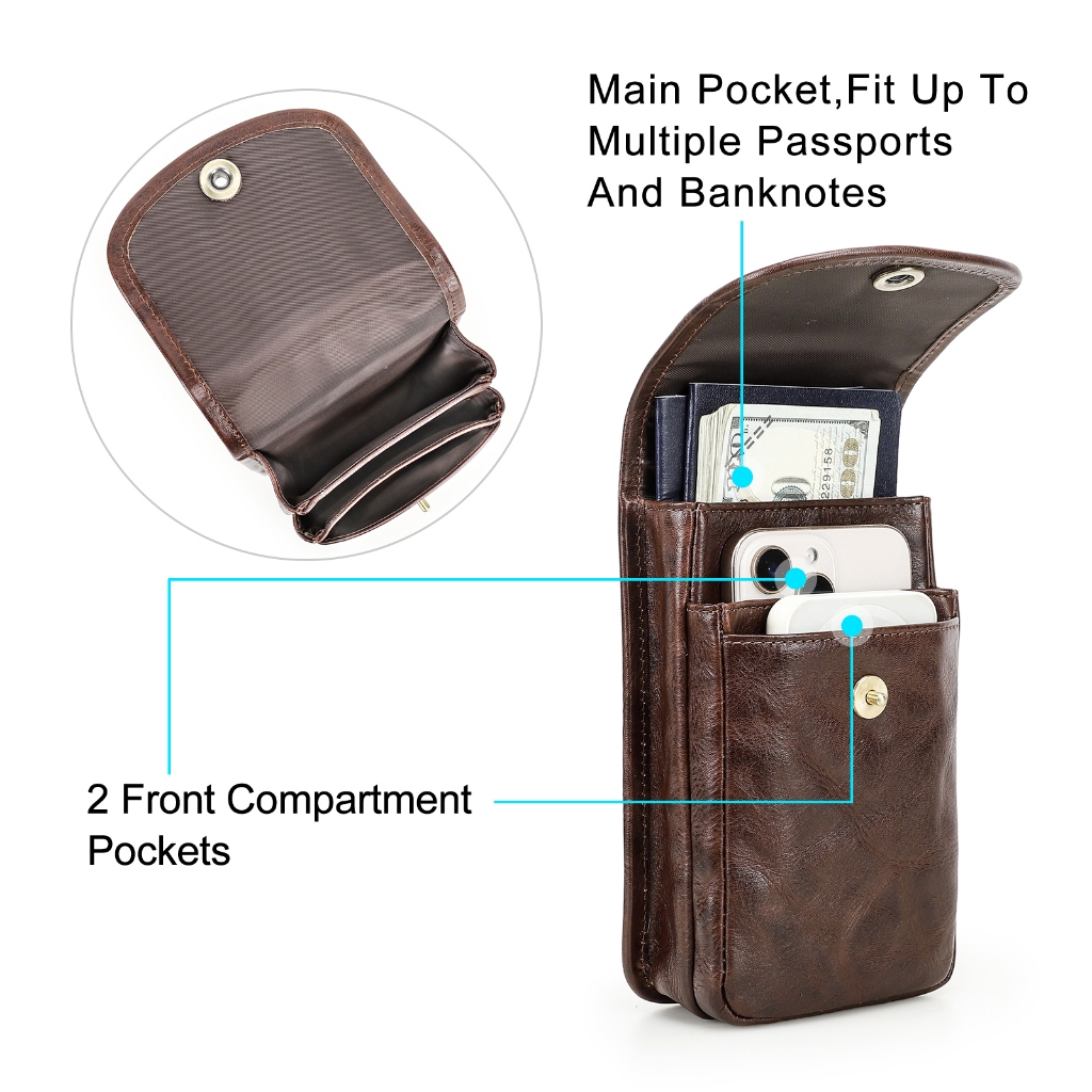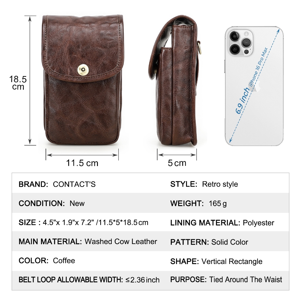 CONTACT'S หนังแท้กระเป๋าโทรศัพท์เอวผู้ชายหรูหนังล้างเอวแพ็คกระเป๋าเข็มขัดแนวตั้งสำหรับ 6.9 "โทรศัพท์ Pro Max