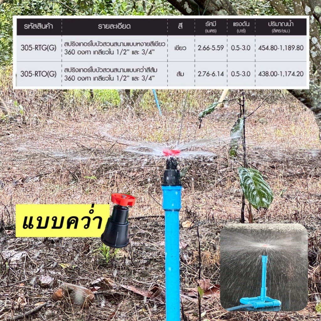 (แพ็ค 5 ตัว,10 ตัว) หัวสปริงเกอร์ใบบัว เกลียวใน 1/2" x 3/4" (แบบหงาย-สีเขียว/แบบคว่ำ-สีส้ม) ตรา ไชโย