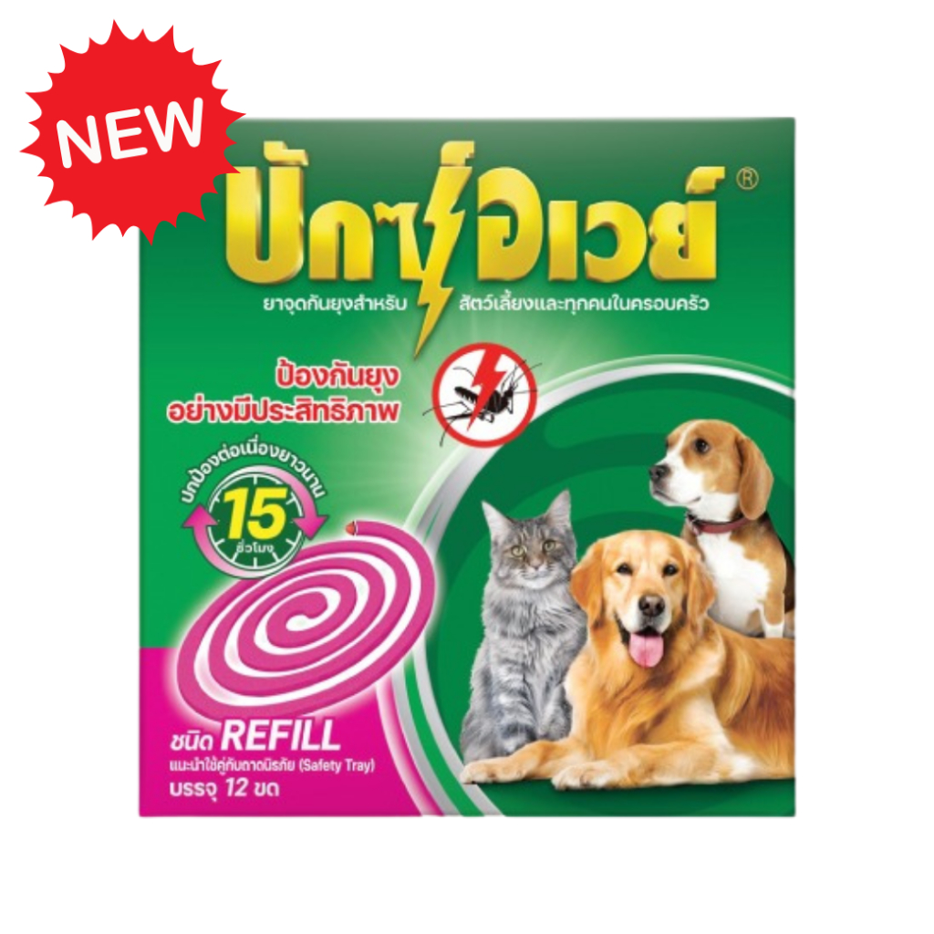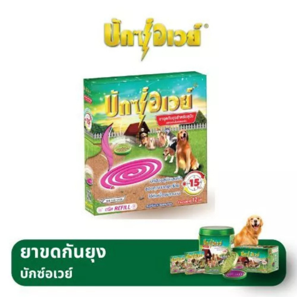 บักซ์อเวย์ 60 ขด ( 5กล่อง) รุ่น รีฟิล ไม่มีถาด ยาจุดกันยุง สำหรับสัตว์เลี้ยง