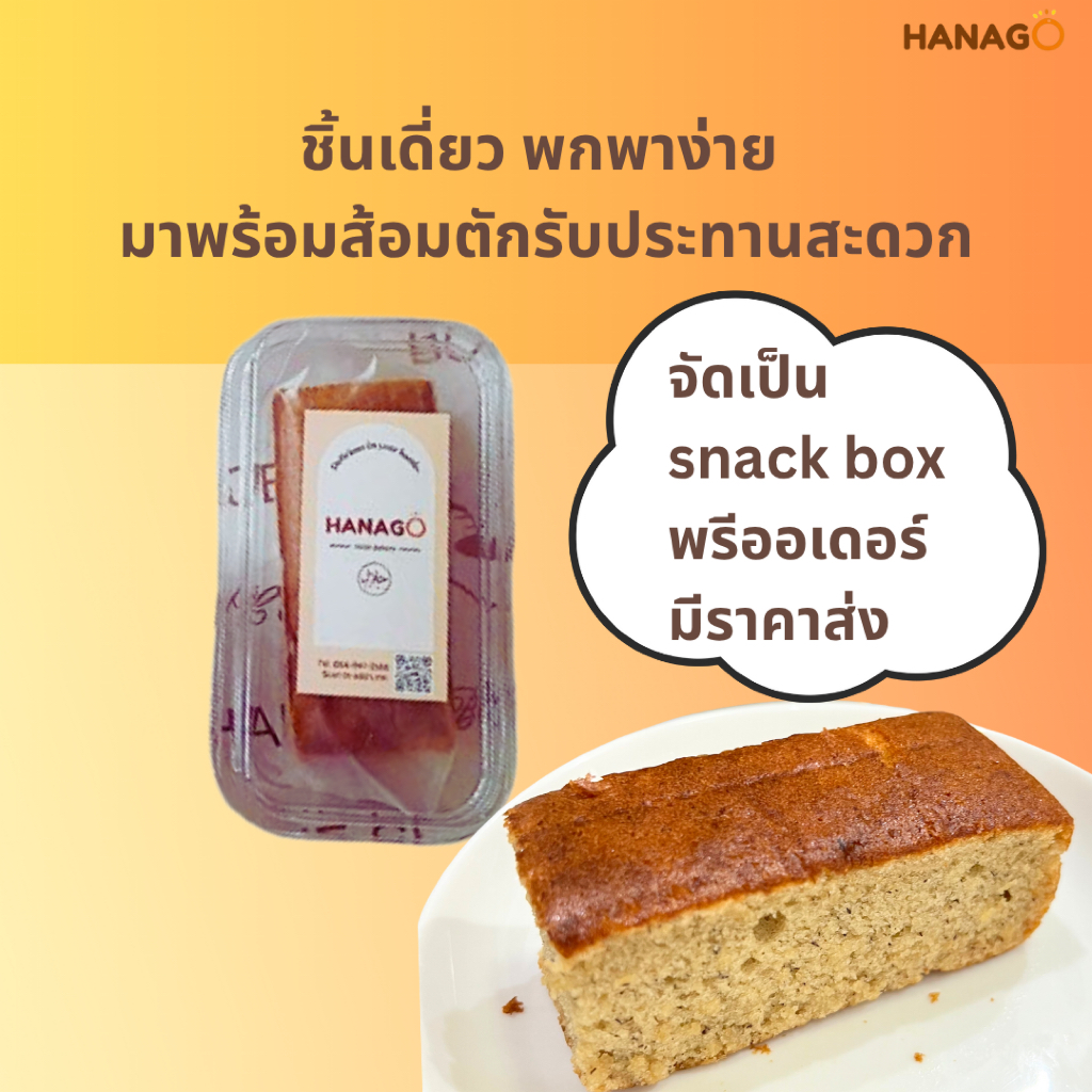HANAGO เค้กกล้วยหอม ฮาลาล [ชิ้นเดี่ยว] Banana cake halal สูตรดั้งเดิม ขนมปัง เบเกอรี่ เค้ก พร้อมทาน