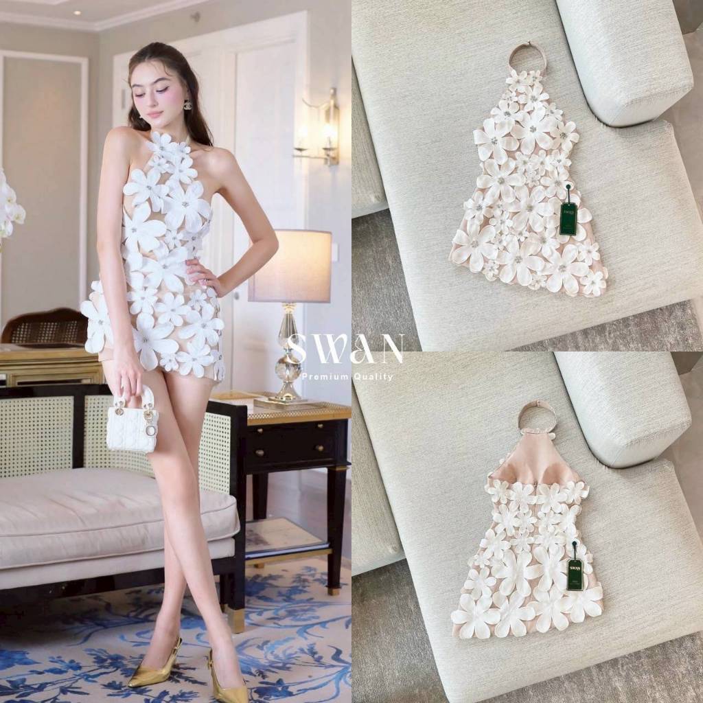 Swan เดรสสั้นดีไซน์สุดโดดเด่นด้วยลายดอกไม้สามมิติทั้งตัว