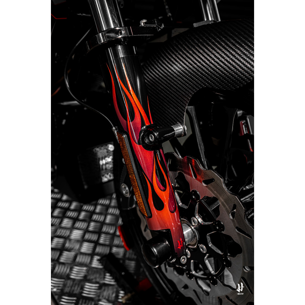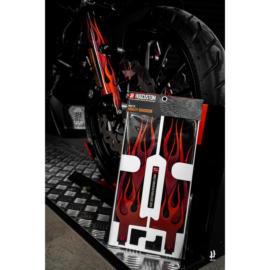HUGSHIELD™ สติกเกอร์ติดโช้ค Harley Davidson สำหรับ Road Glide / Street Glide / Road King ลาย Flame