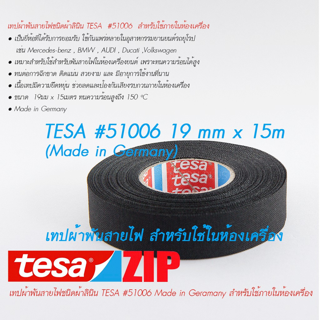 (ม้วนเล็ก ยาว 15 เมตร) TESA #51006เทปผ้าพันสายไฟรถยนต์ ทนความร้อนสูง ชนิดผ้าลินิน ใช้ในห้องเครื่อง ขนาด 19มม * 15เมตร