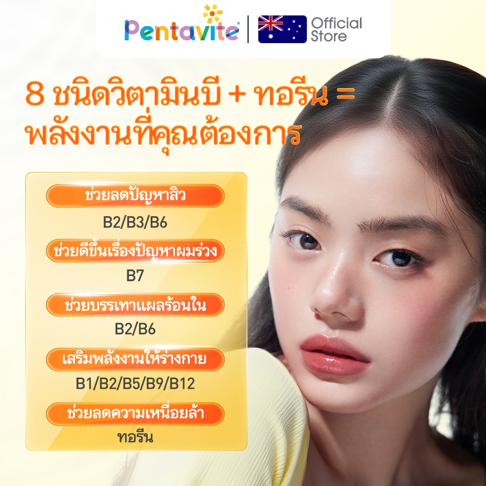 Pentavite Bubbly B Plus วิตามินบี 1 ขวด 30 เม็ด Vitamin B12 วิตามินบีรวม วิตามินบี 12 ช่วยคลายเครียด