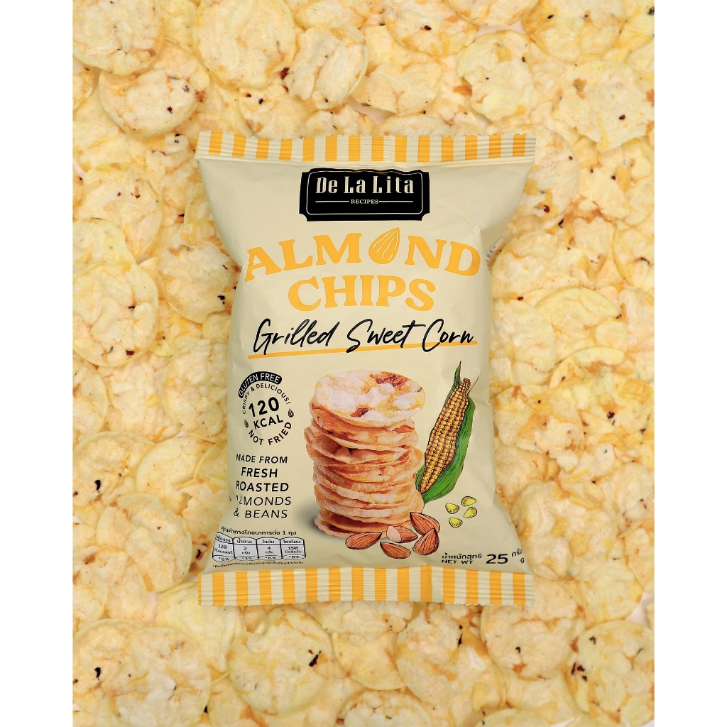 De La Lita Almond Chips ขนมคลีน ขนมอบกรอบ อัลมอนด์ ชิพส์ แคลต่ำ อบ ไม่ทอด กลูเตนฟรี เจ วีแกน มังสวิรัติ vegan ขนมสุขภาพ